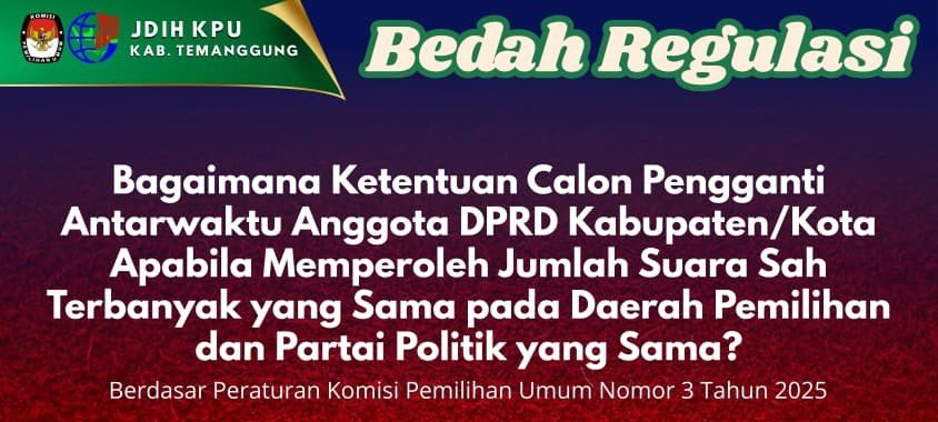 Halo #sobatjdih dan #TemanPemilih! ???? Tahukah kamu? Dalam proses penetapan Calon Pengganti Antarwaktu (PAW) Anggota DPRD Kabupaten/Kota, jika ada lebih dari satu calon yang memperoleh jumlah suara sah terbanyak dengan angka yang sama, maka penentuannya dilakukan berdasarkan persebaran wilayah perolehan suara sah. Yuk simak penjelasan lengkapnya di konten Bedah Regulasi kali ini???? #kputemanggung #kpumelayani #jdihkputemanggung ....
