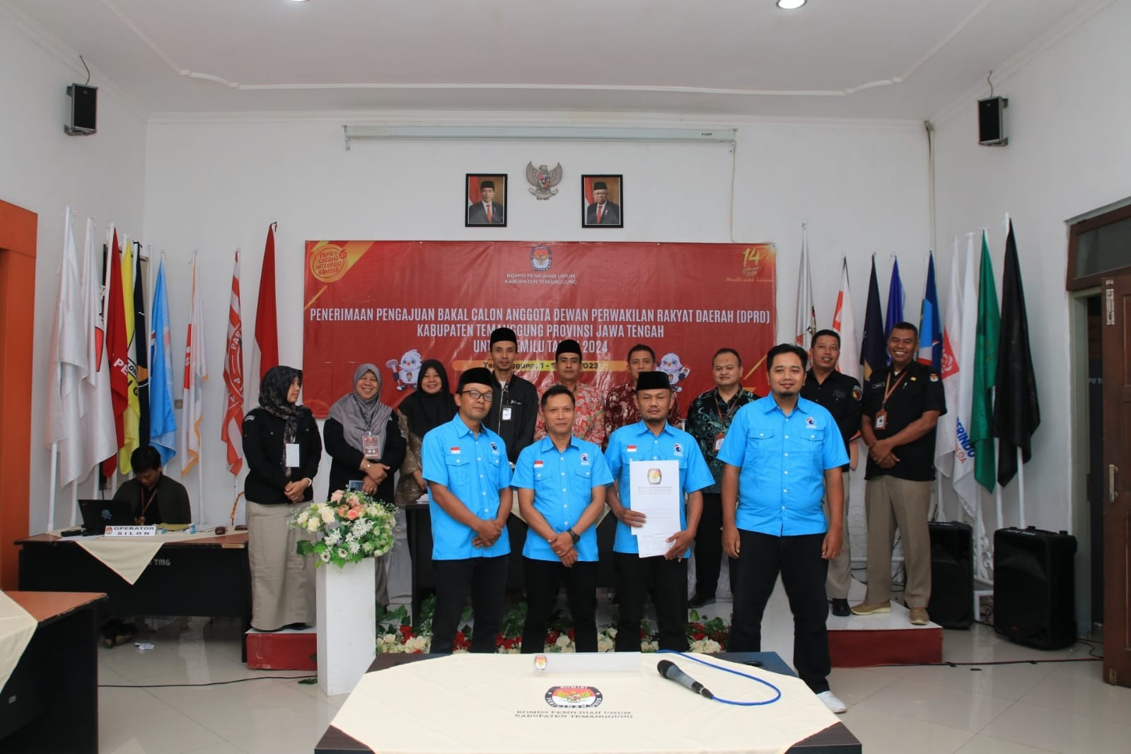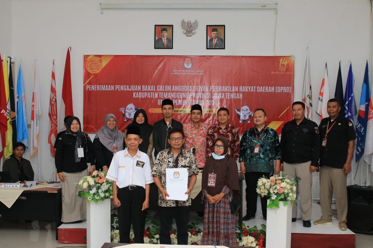 Temanggung- KPU Kabupaten Temanggung menerima pengajuan bakal calon Anggota DPRD Kabupaten Temanggung untuk Pemilu 2024 dari Partai Ummat, Minggu (14/5), di aula kantor setempat. “Kami mengajukan bakal calon Anggota DPRD Kabupaten Temanggung sebanyak 18 bakal calon di 6 daerah pemilihan,” ungkap Ketua Pimpinan Partai Ummat Tingkat Temanggung, Fajar Irianto dalam pengajuan bakal calon tersebut. Adapun jumlah bakal calon laki-laki sebanyak 6 orang dan bakal calon perempuan sebanyak 12 orang. Dalam pengajuan tersebut, Partai Ummat telah memenuhi ketentuan pengajuan bakal calon, salah satunya pemenuhan kuota minimal 30 persen keterwakilan perempuan serta pemenuhan susunan calon perempuan dengan zipper system. Berdasarkan hasil pemeriksaan dokumen syarat pengajuan, KPU Kabupaten Temanggung menyatakan pengajuan Bakal Calon Anggota DPRD Kabupaten Temanggung dari Partai Ummat lengkap dan benar. “Berdasarkan hasil pemeriksaan, status pengajuan bakal calon Anggota DPRD Kabupaten Temanggung dinyatakan lengkap dan diterima,” ungkap Ketua KPU Kabupaten Temanggung, M. Yusuf Hasyim saat membacakan Berita Acara Penerimaan Pengajuan. Untuk diketahui KPU Kabupaten Temanggung menerima pengajuan bakal calon Anggota DPRD Kabupaten Temanggung mulai tanggal 1 Mei s.d. 14 Mei 2023 sesuai dengan Peraturan KPU Nomor 10 Tahun 2023. Terhadap Partai Politik yang dinyatakan lengkap dan diterima, selanjutnya akan dilakukan verifikasi administrasi. []
