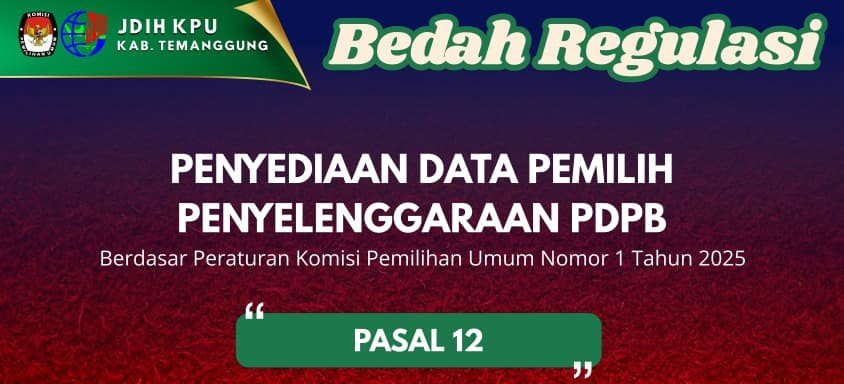 Simak informasi dari KPU Temanggung berikut mengenai Penyelenggara PDPB sesuai ketentuan regulasi yang berlaku, dan jangan lupa ikuti terus konten Bedah Regulasi KPU Kabupaten Temanggung