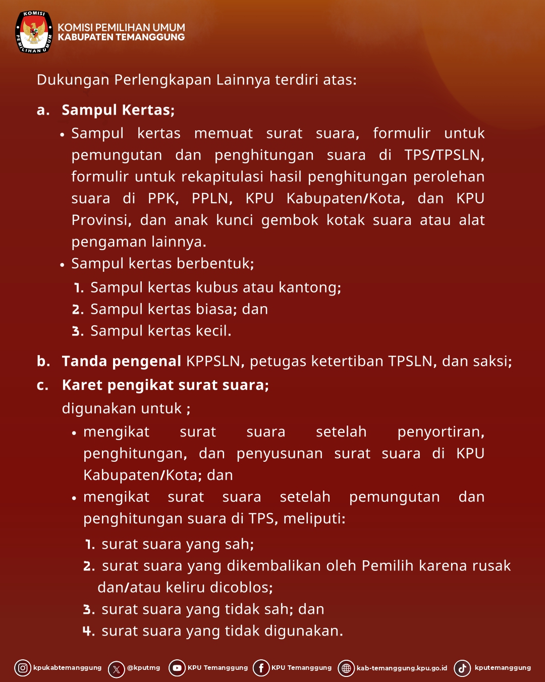 #TemanPemilih, di edisi Belajar Pemilu kali ini kita membahas tentang Dukungan Perlengkapan Lainnya dalam Pemilu