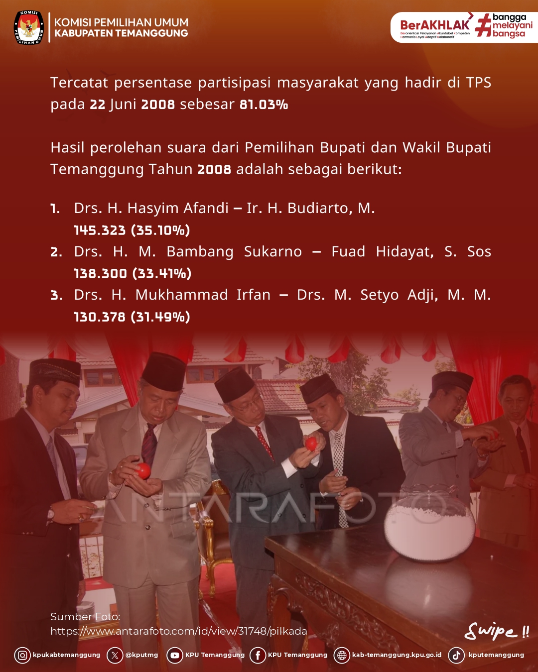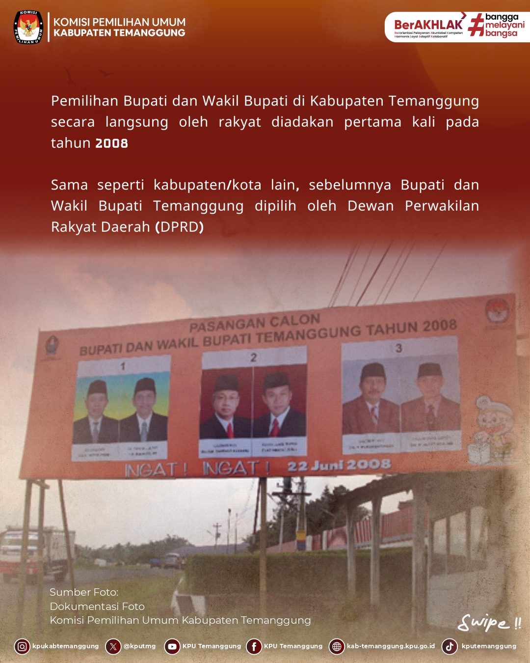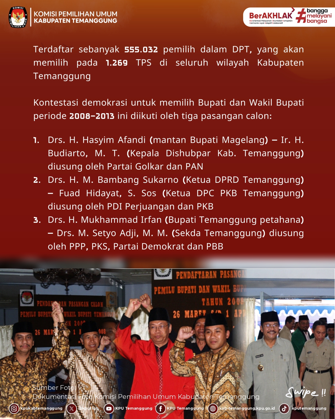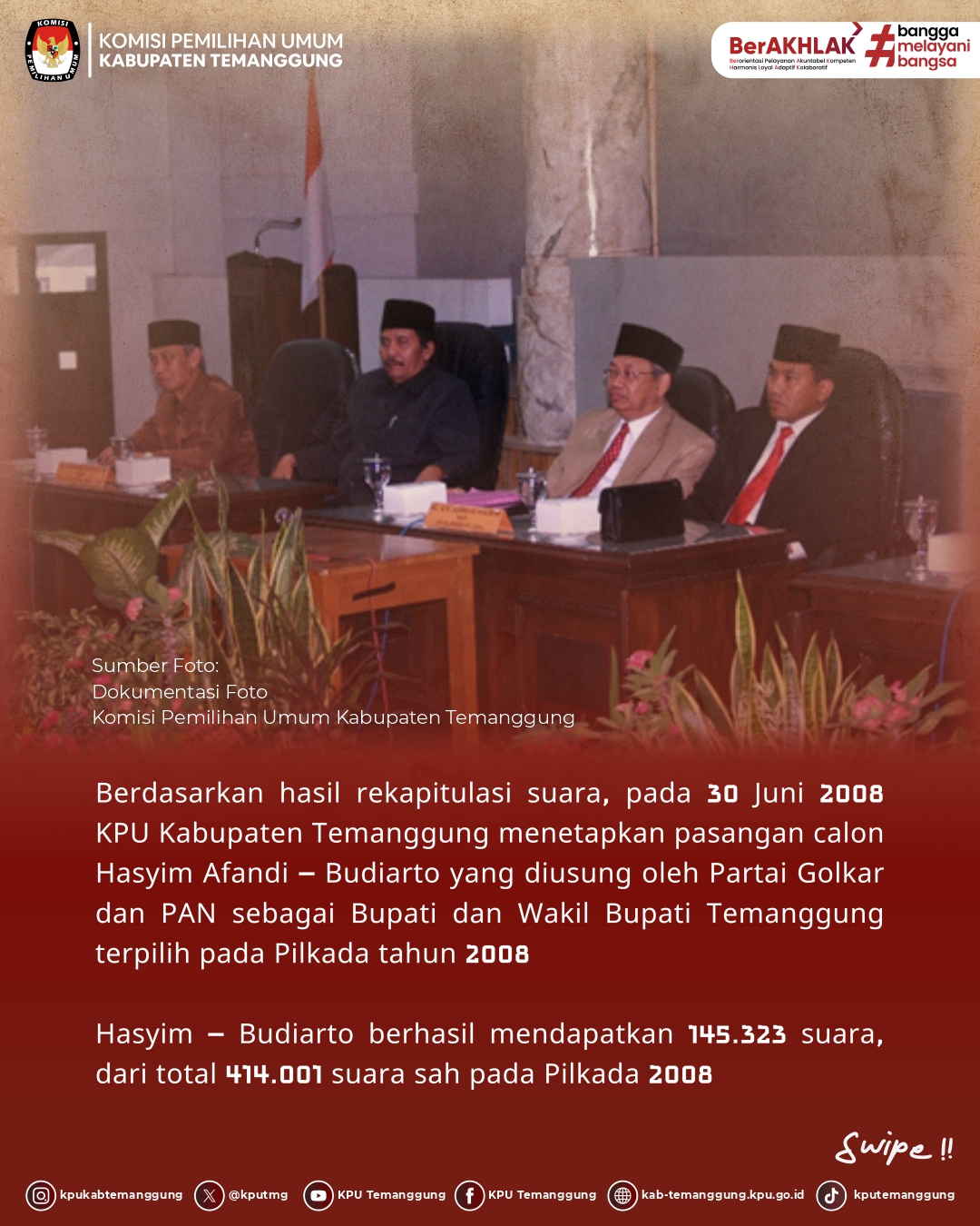 Jangan sampai ketinggalan informasi seputar Jejak Demokrasi dari KPU Kabupaten Temanggung di setiap minggunya