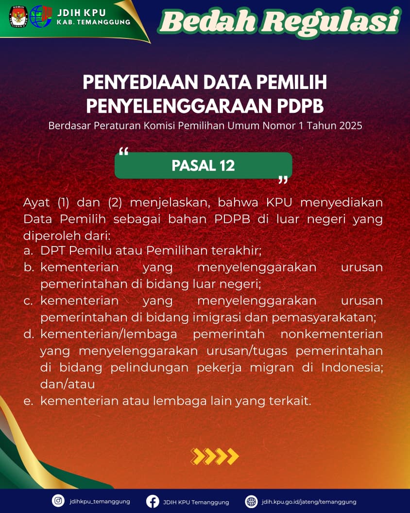 Simak yuk informasi dari KPU Temanggung berikut mengenai Peyediaan Data Pemilih Penyelenggaraan Pemutakhiran Data Pemilih Berkelanjutan, dan jangan lupa ikuti terus konten Bedah Regulasi KPU Kabupaten Temanggung.