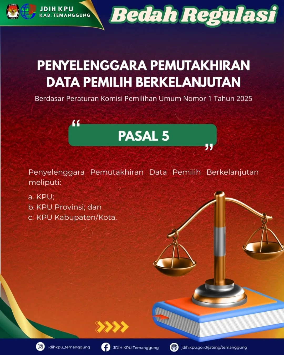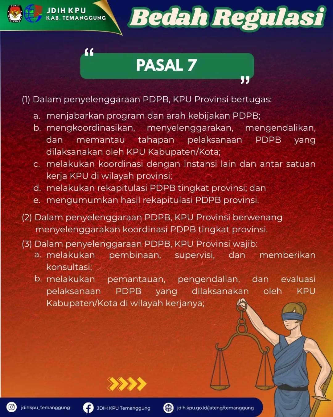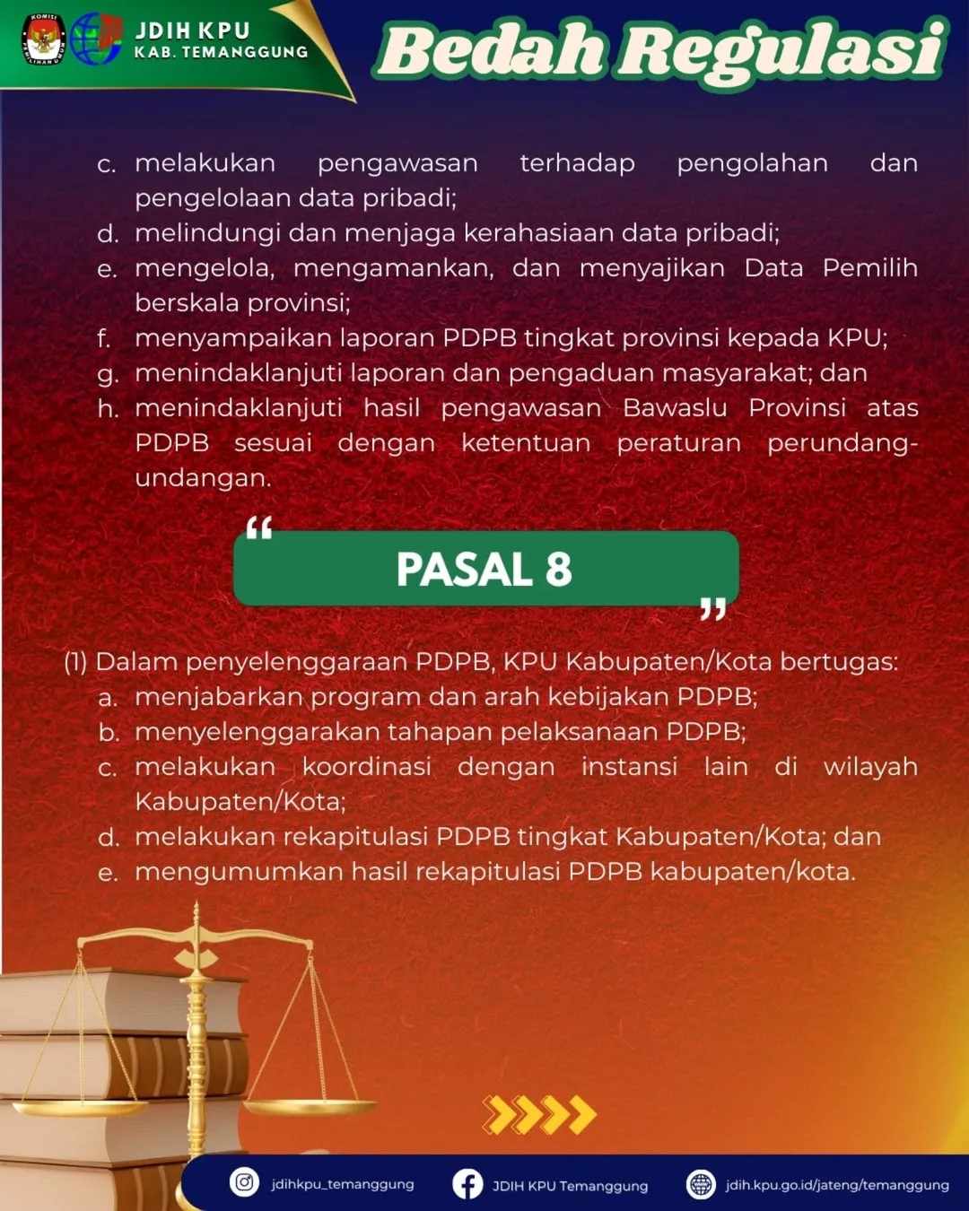 Simak informasi dari KPU Temanggung berikut mengenai Penyelenggara PDPB sesuai ketentuan regulasi yang berlaku, dan jangan lupa ikuti terus konten Bedah Regulasi KPU Kabupaten Temanggung