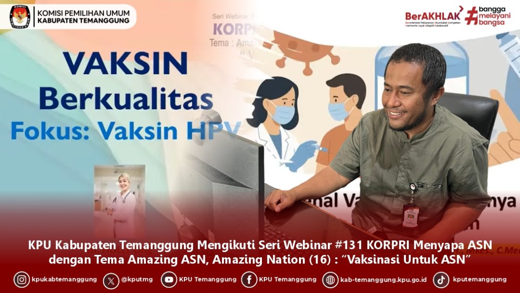 KPU Kabupaten Temanggung Mengikuti Seri Webinar #131 KORPRI Menyapa ASN dengan tema: Amazing ASN, Amazing Nation “Vaksinasi untuk ASN” secara daring pada Selasa (30/9/2025)