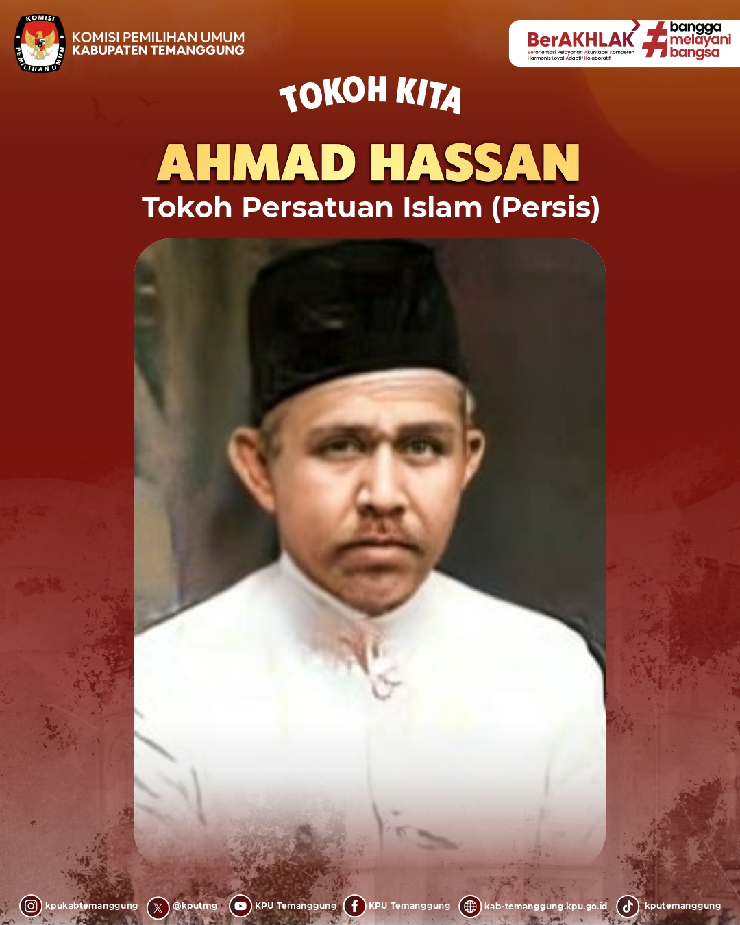 Hai #TemanPemilih, hari ini KPU Kab. Temanggung mengajak teman semua untuk mengenal lebih jauh sosok salah satu tokoh Bangsa Indonesia, yaitu Ahmad Hassan