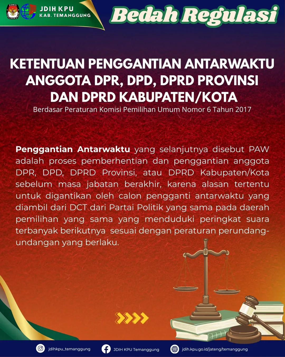 Tahukah kamu? Anggota DPR, DPD, DPRD Provinsi, atau DPRD Kabupaten/Kota bisa diganti sebelum masa jabatannya berakhir melalui mekanisme Penggantian Antarwaktu (PAW).