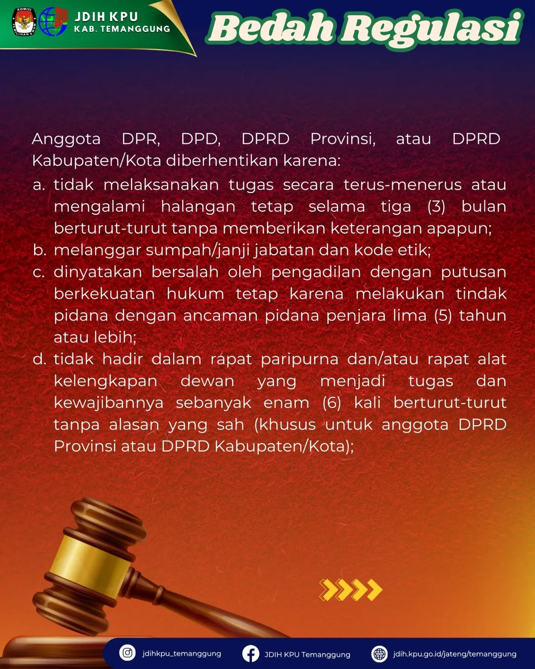Bedah Regulasi : Ketentuan Penggantian Antarwaktu Anggota DPR, DPD, DPRD Provinsi, atau DPRD Kabupaten/Kota