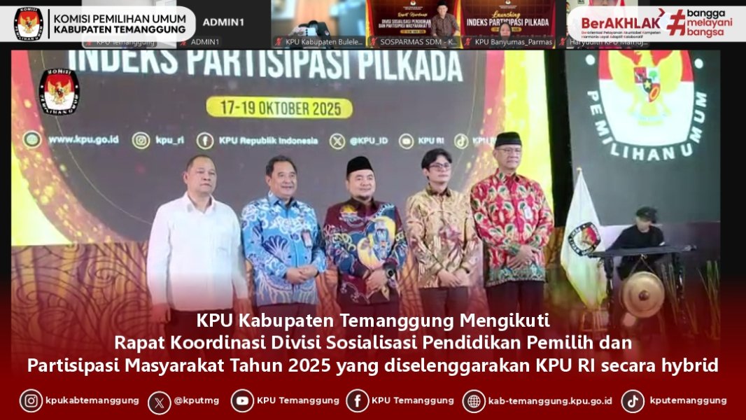 TEMANGGUNG - KPU Kabupaten Temanggung mengikuti Rapat Koordinasi Divisi Sosialisasi Pendidikan Pemilih dan Partisipasi Masyarakat Tahun 2025 yang diselenggarakan KPU RI secara hybrid (17-18/10/2025)