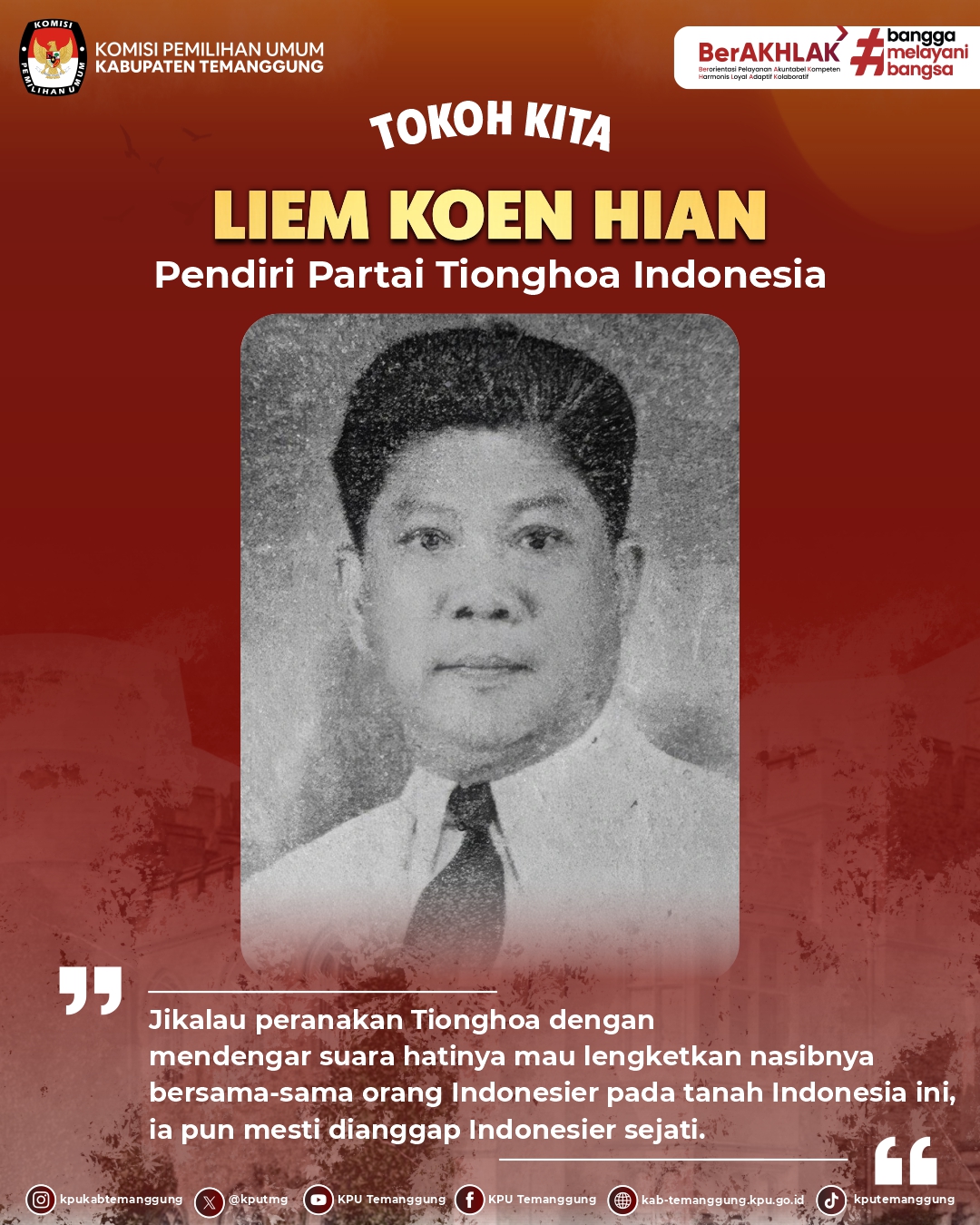 Hai #TemanPemilih, hari ini KPU Kab. Temanggung mengajak teman semua untuk mengenal lebih jauh sosok salah satu tokoh Bangsa Indonesia, yaitu Liem Koen Hian
