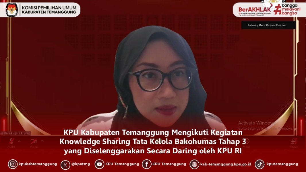TEMANGGUGN - KPU Kabupaten Temanggung mengikuti kegiatan Knowledge Sharing Tata Kelola Bakohumas Tahap 3 yang diselenggarakan KPU RI secara daring, Senin (27/10/2025)