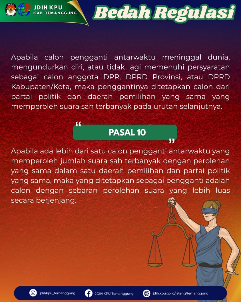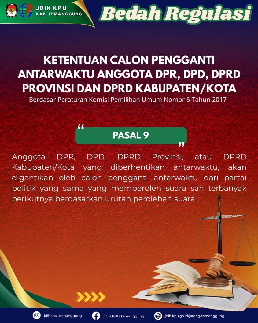 Tahukah kamu? Ketentuan bagi calon pengganti antarwaktu Anggota DPR, DPD, dan DPRD Provinsi maupun Kabupaten/Kota.