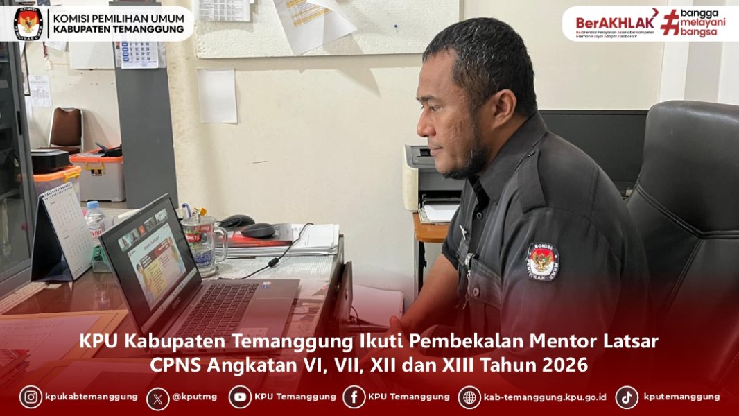 TEMANGGUNG - KPU Kabupaten Temanggung mengikuti Pembekalan Mentor Pelatihan Dasar (Latsar) CPNS KPU Provinsi Jawa Tengah Angkatan XIII Tahun 2026 secara daring pada Rabu (4/2/2026)