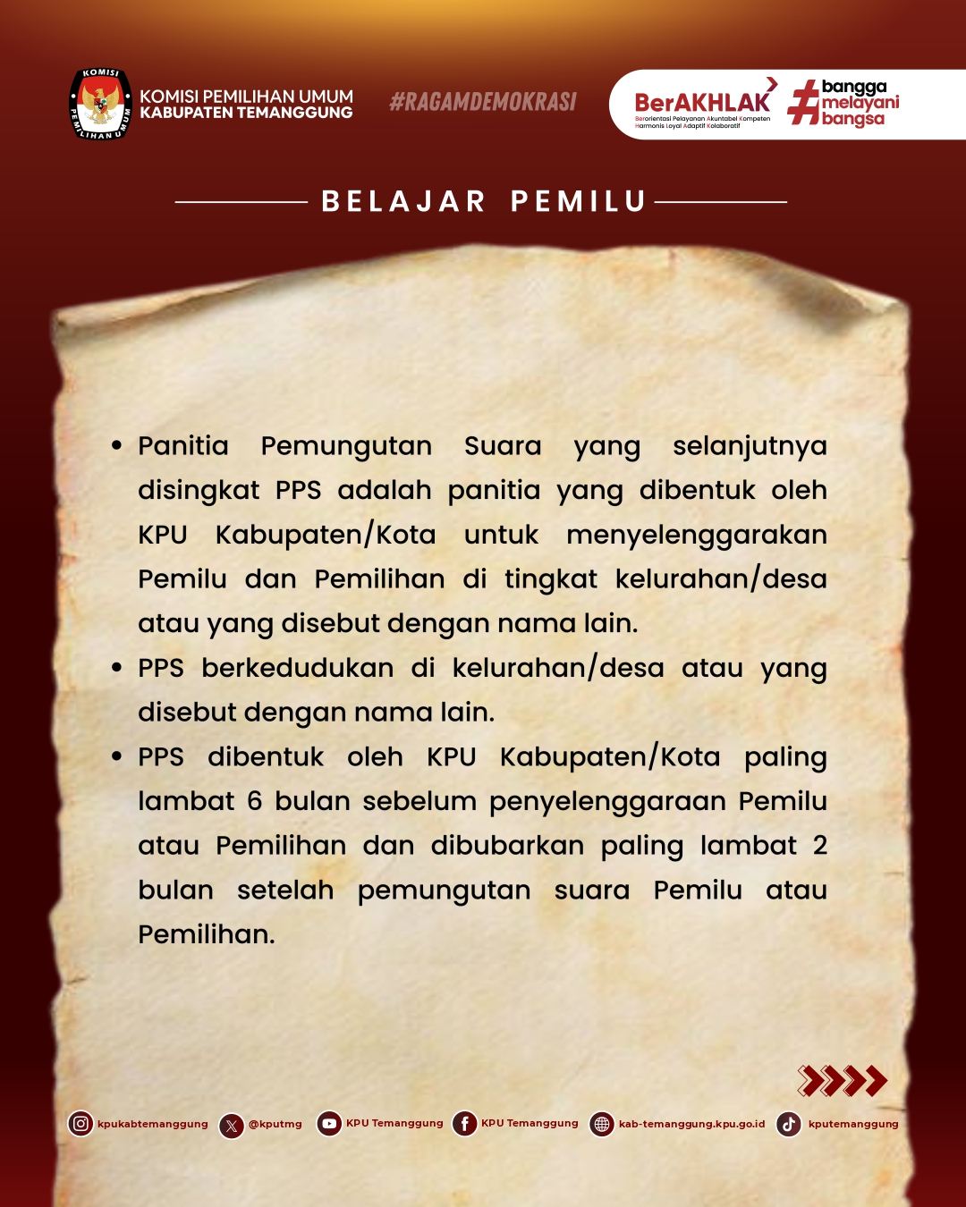 Simak yuk informasi berikut dan ikuti terus konten Belajar Pemilu bareng KPU Kabupaten disetiap minggunya, jangan sampai ke skip ya!