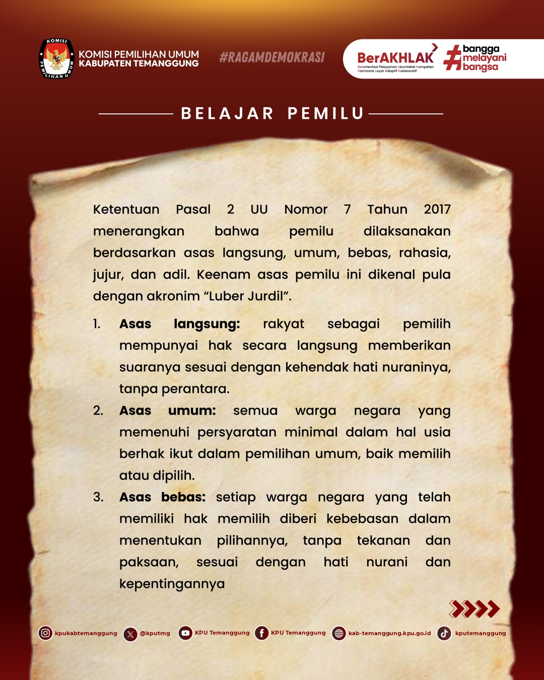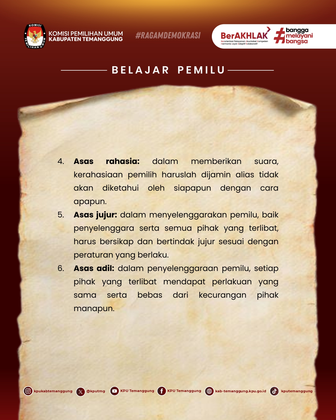 #TemanPemilih, bertemu lagi di Belajar Pemilu. Pada edisi kali ini kita akan mengulas seputar Asas Pemilu di Indonesia