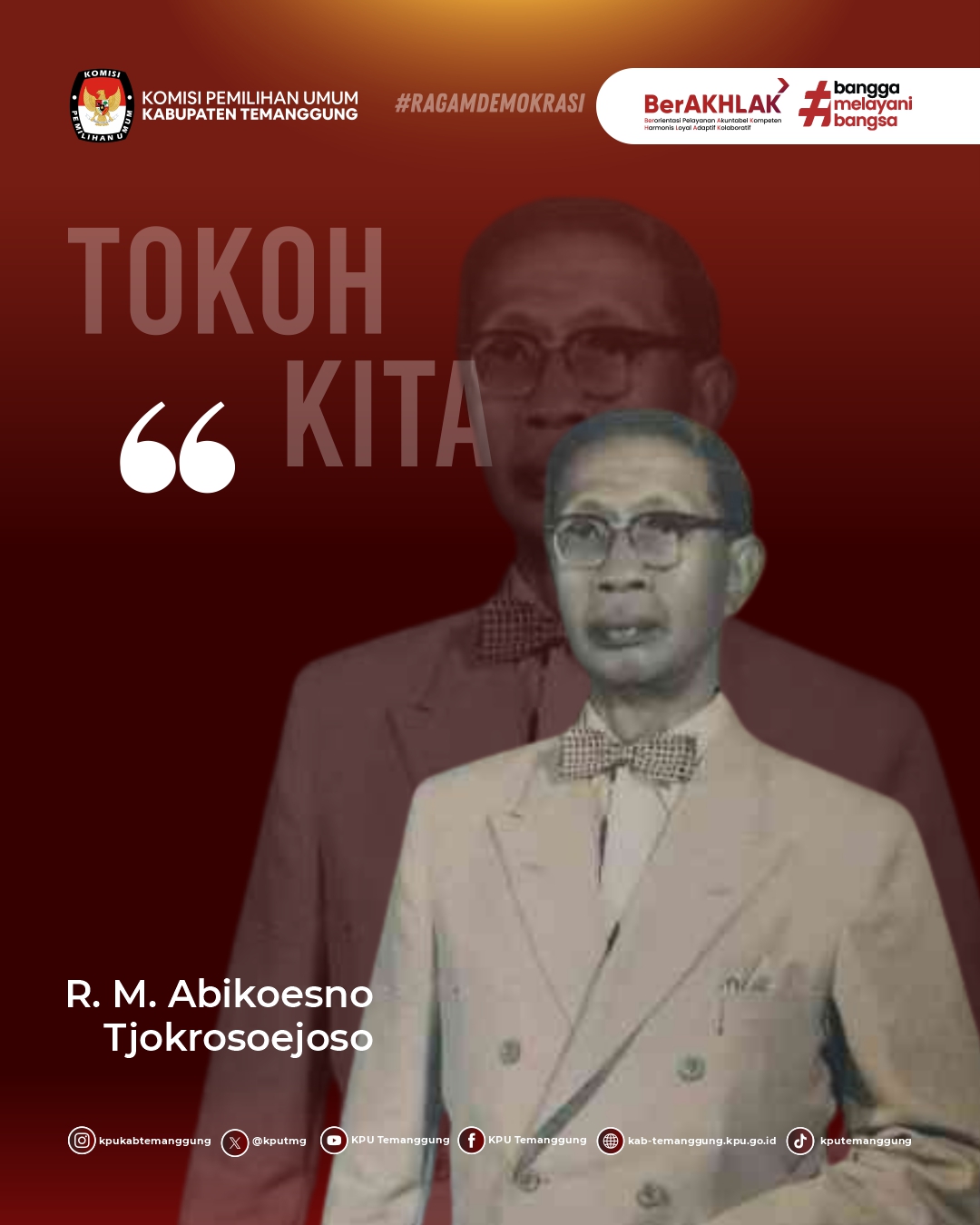 Hai #TemanPemilih, hari ini KPU Kab. Temanggung mengajak teman semua untuk mengenal lebih jauh sosok salah satu tokoh Bangsa Indonesia, yaitu R. M. Abikoesno Tjokrosoejoso