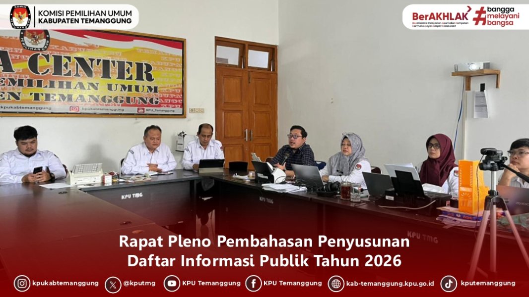 #TemanPemilih, KPU Kabupaten Temanggung melaksanakan Rapat Pleno Pembahasan Penyusunan Daftar Informasi Publik Tahun 2026 bertempat di Media Center KPU Kabupaten Temanggung pada Senin, (02/02/2026)