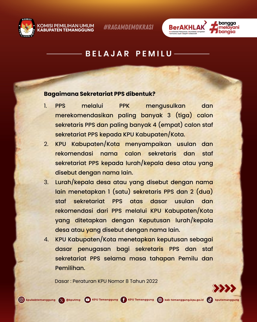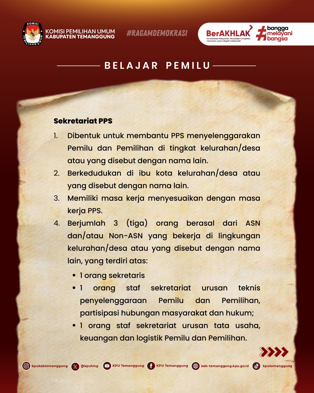 Terus ikuti konten Belajar Pemilu bareng KPU Kabupaten Temanggung di setiap minggunya ya