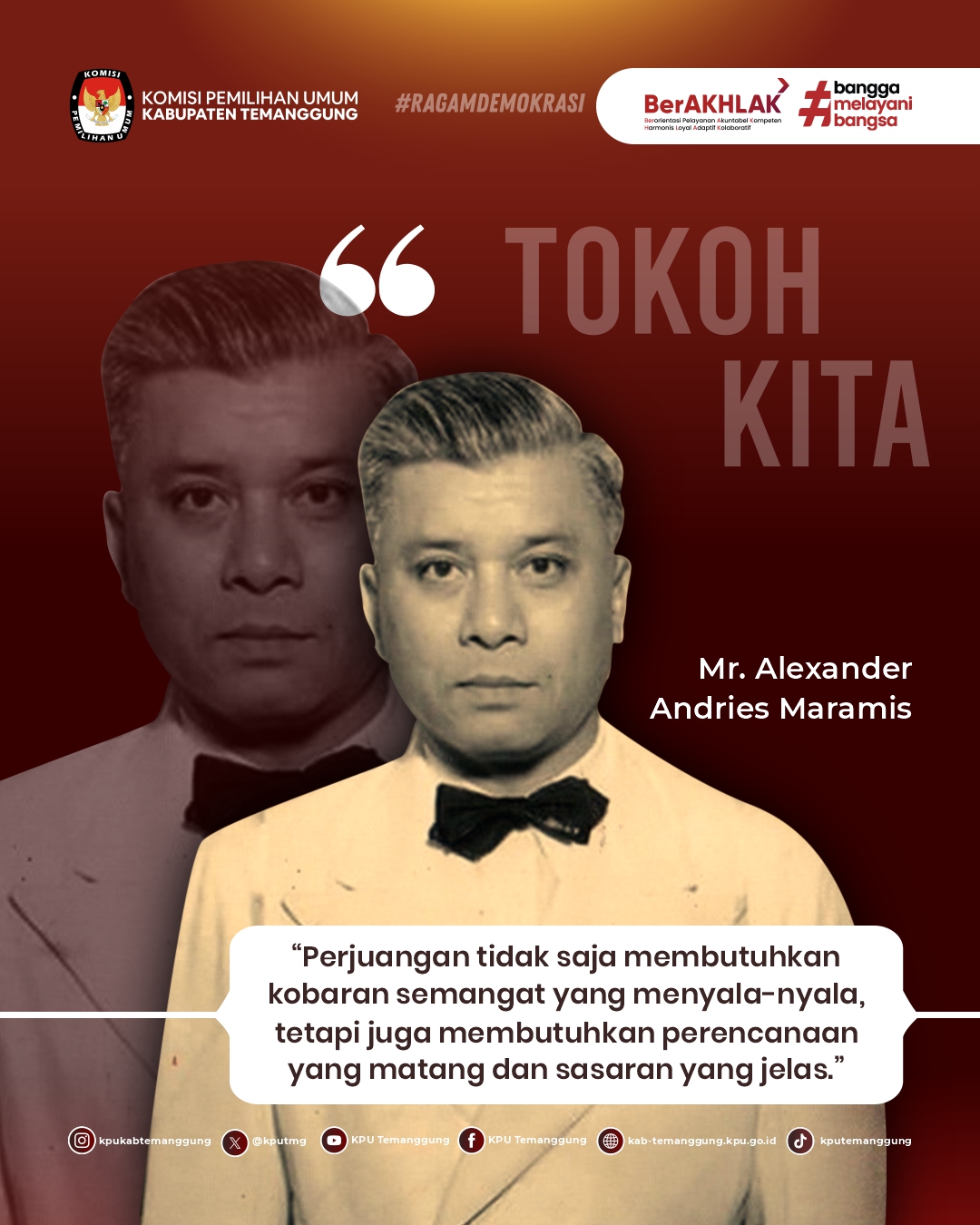 Hai #TemanPemilih, hari ini KPU Kab. Temanggung mengajak teman semua untuk mengenal lebih jauh sosok salah satu tokoh Bangsa Indonesia, yaitu Mr. Alexander Andries Maramis.
