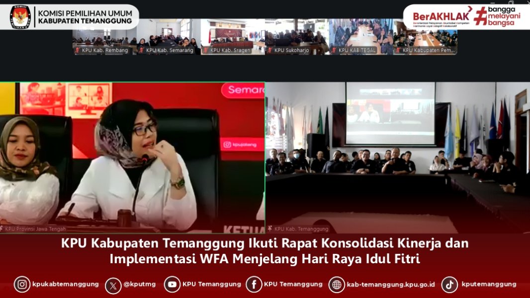 TEMANGGUNG - jelang Hari Raya Idul Fitri, KPU Kabupaten Temanggung mengikuti Rapat Konsolidasi Kinerja dan Implementasi Work Form Anywhere (WFA) yang diselenggarakan KPU Provinsi Jawa Tengah secara daring pada Rabu (11/03/26)