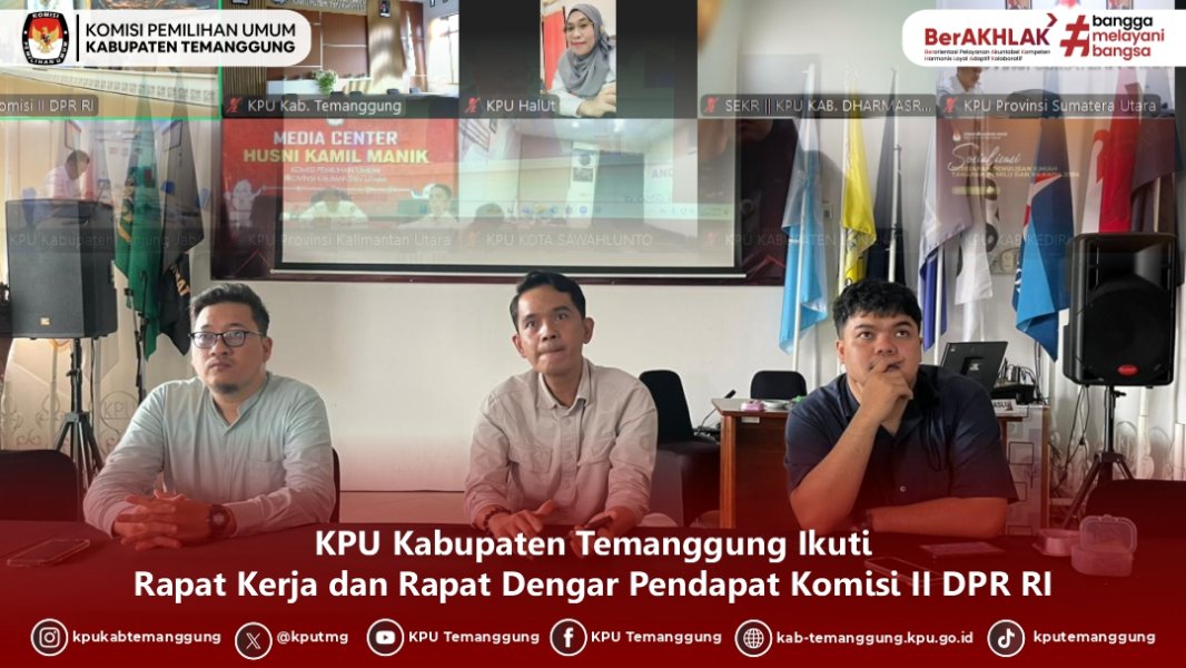 TEMANGGUNG - KPU Kabupaten Temanggung mengikuti secara daring agenda Rapat Kerja dan Rapat Dengar Pendapat bersama Komisi II DPR RI secara daring pada Senin, (30/3/2026)