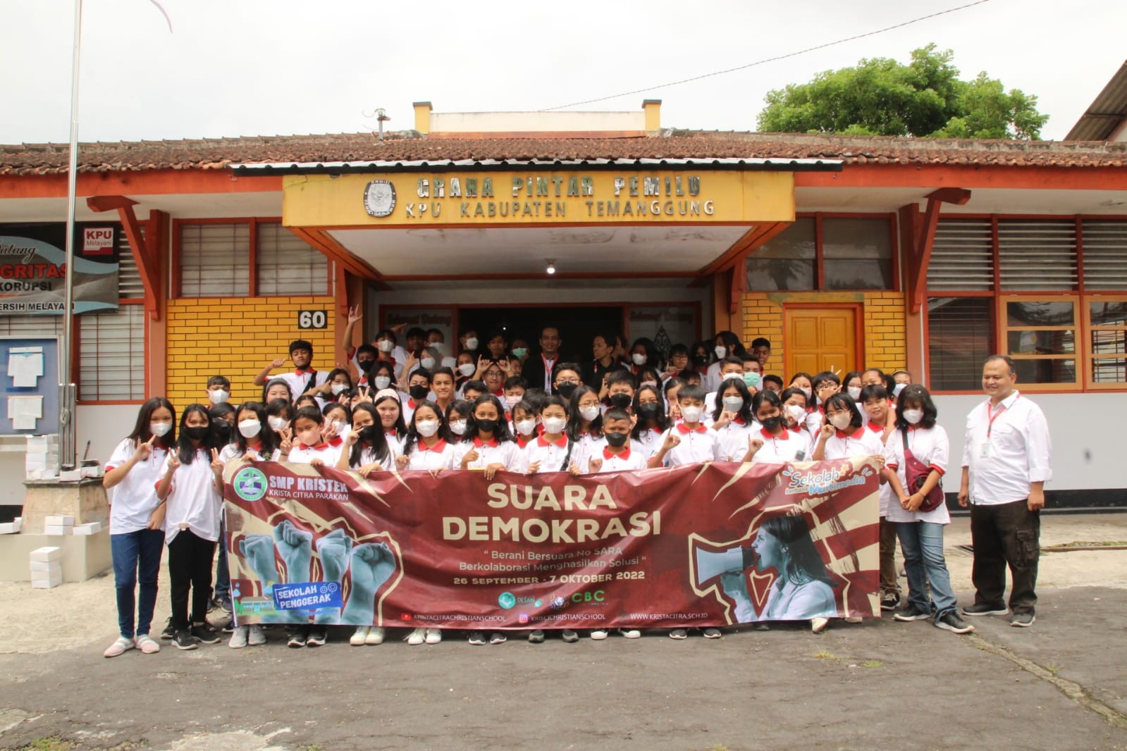 “Kunjungan ini diharapkan dapat menjadi pendidikan demokrasi bagi anak-anak secara maksimal, sehingga nanti ketika menggunakan hak pilihnya dapat memanfaatkan dengan baik untuk dapat memajukan bangsa dan negara,” ungkap Pujiono, Kepala Sekolah SMP Kristen Krista Citra Parakan.