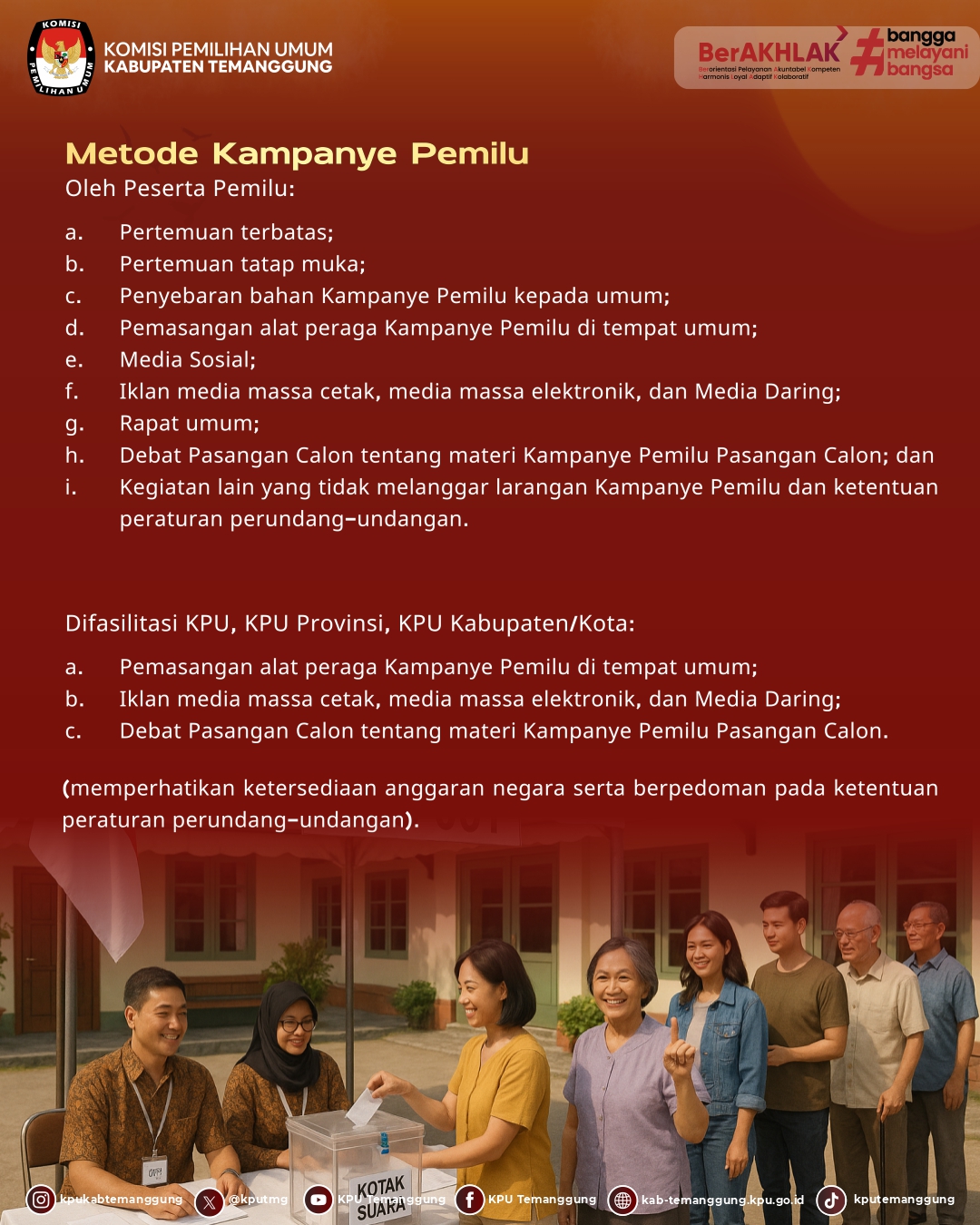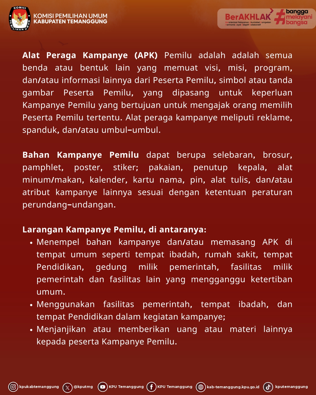 Yuk simak informasi berikut, dan ikuti terus konten belajar seputar Pemilu dan Pemilihan bersama KPU Kabupaten Temanggung.