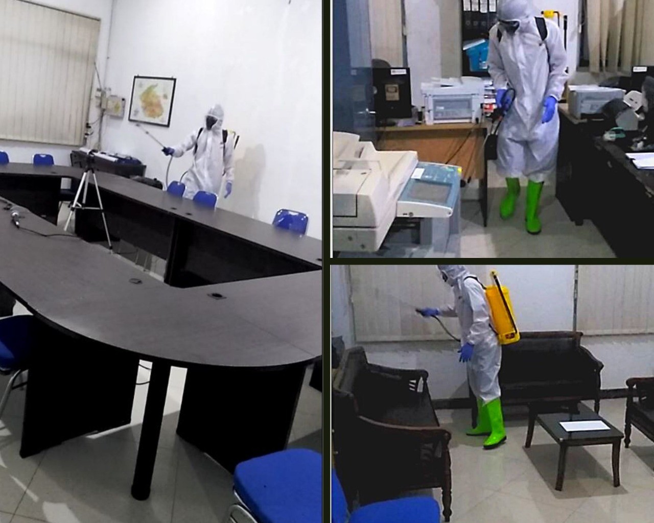 ‘’Ruang-ruang kantor juga disemprot disinefektan secara rutin, serta menerapkan protokol kesehatan menjaga jarak bagi siapa saja ketika menemui tamu,’’tuturnya.