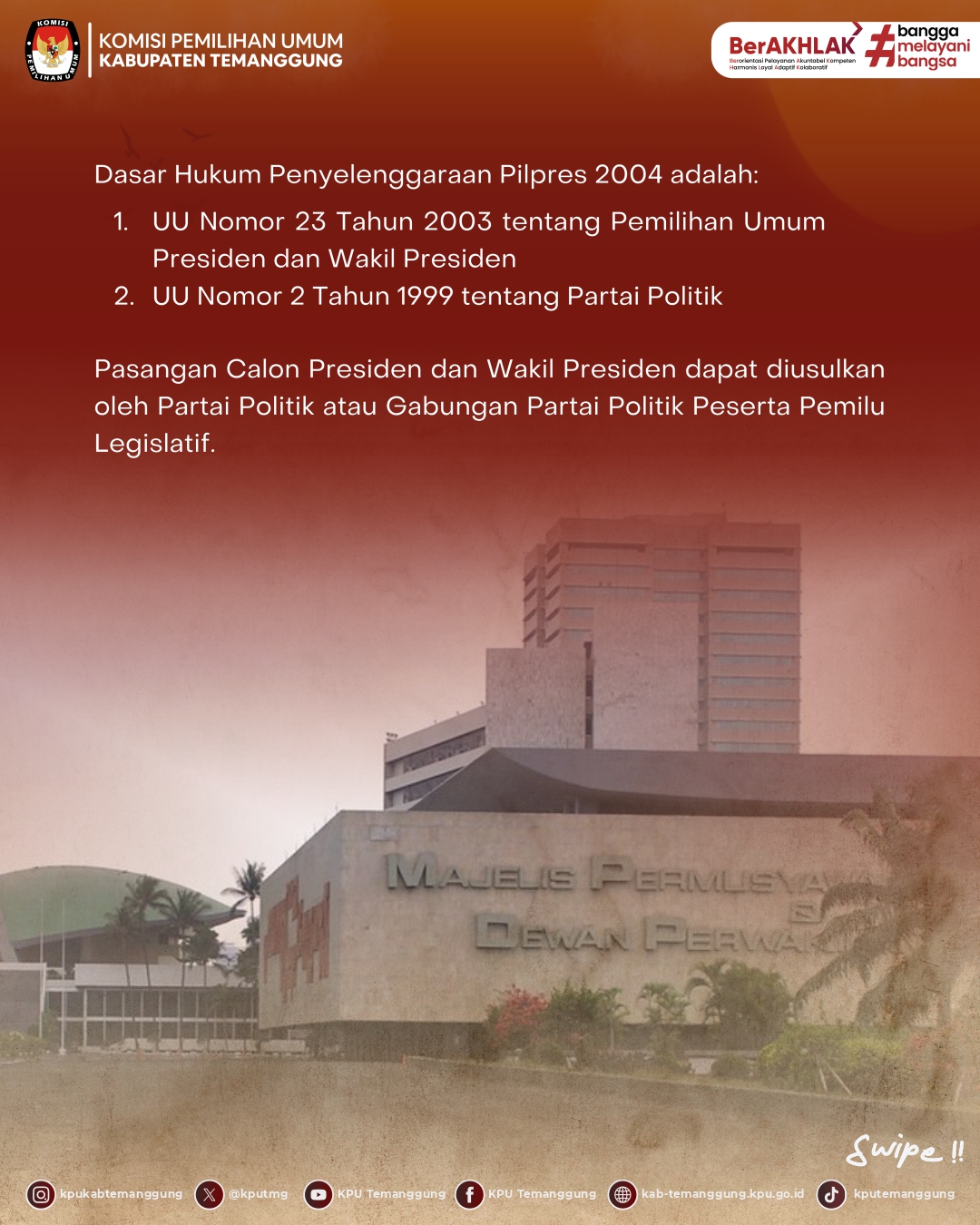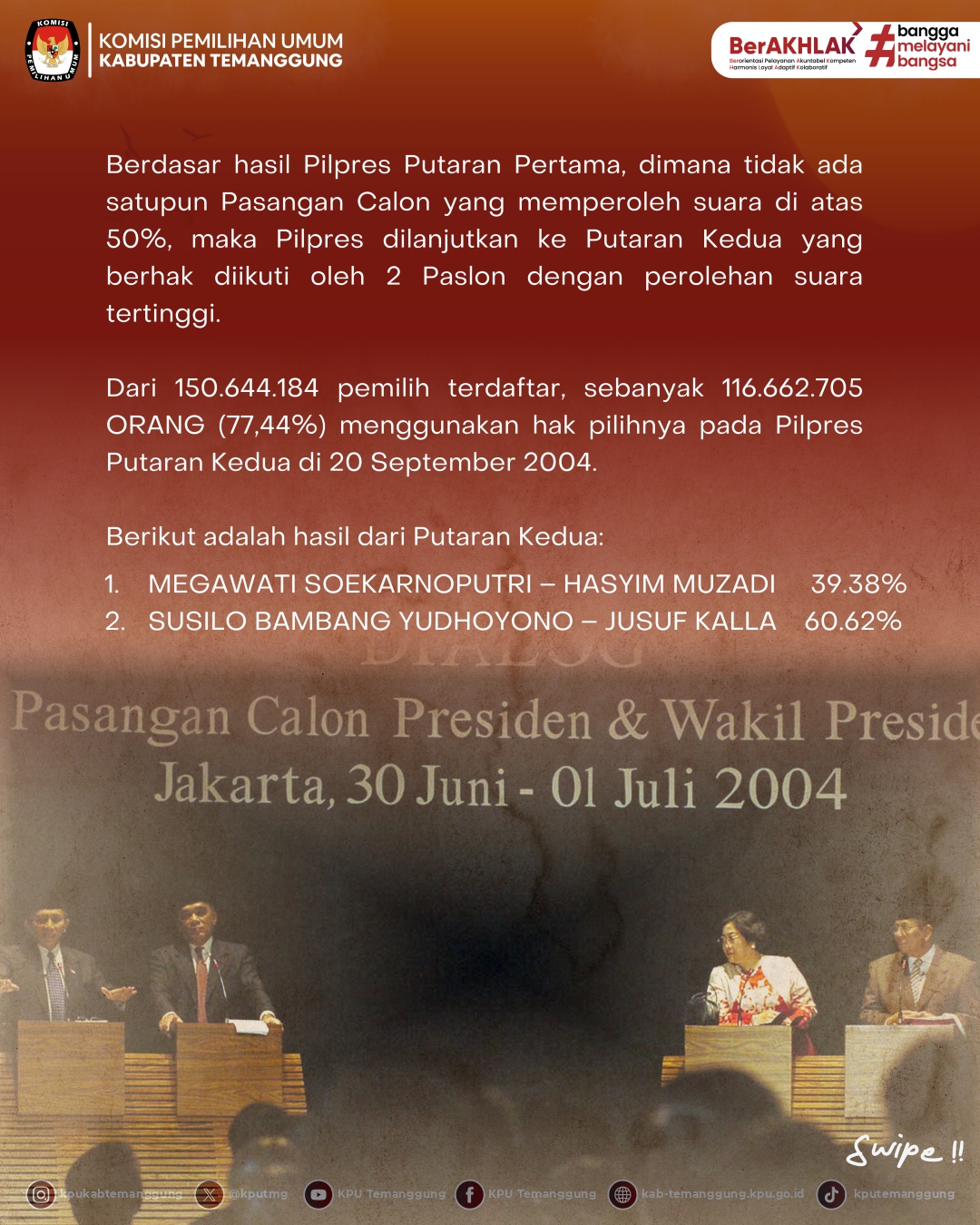 Hai #TemanPemilih, di edisi Jejak Demokrasi kali ini kita akan mengulas sejarah Pemilihan Presiden Tahun 2004
