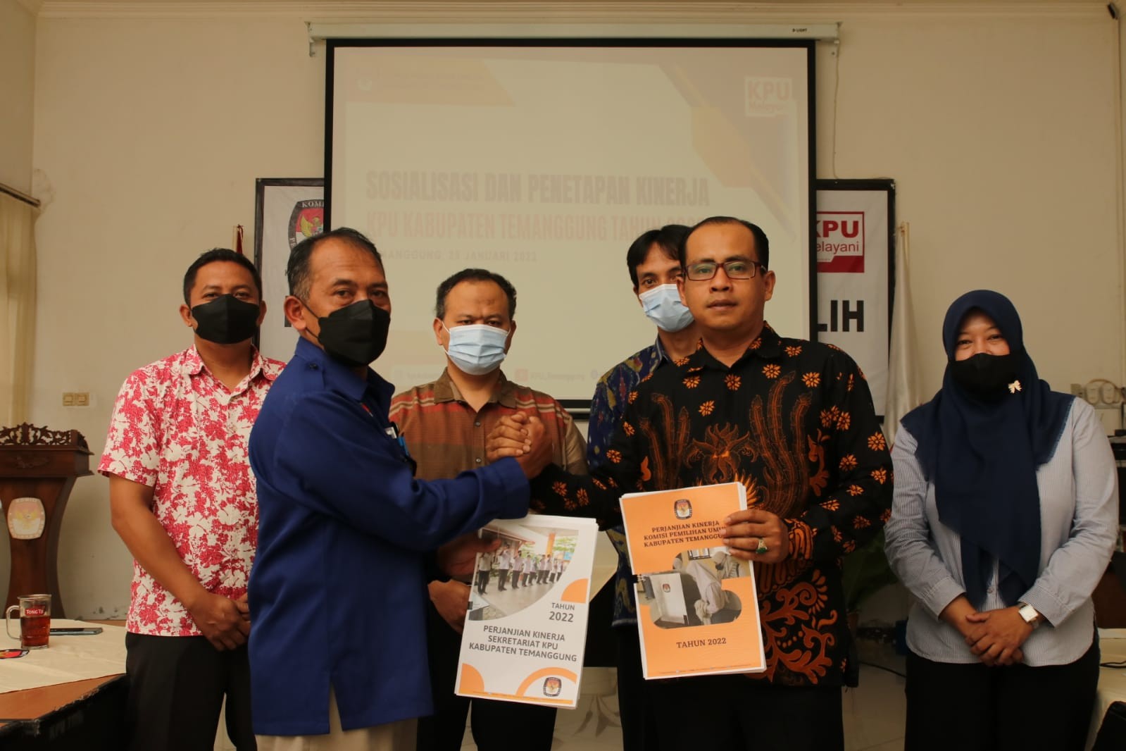 Temanggung- Untuk meningkatkan integritas, akuntabilitas, transparansi, dan kinerja, KPU Kabupaten Temanggung menandatangani Penetapan Kinerja Tahun 2022 sebagai target kinerja selama satu tahun ini dan menjadi dasar evaluasi kinerja di akhir tahun, Senin (25/1), bertempat di aula kantor setempat.