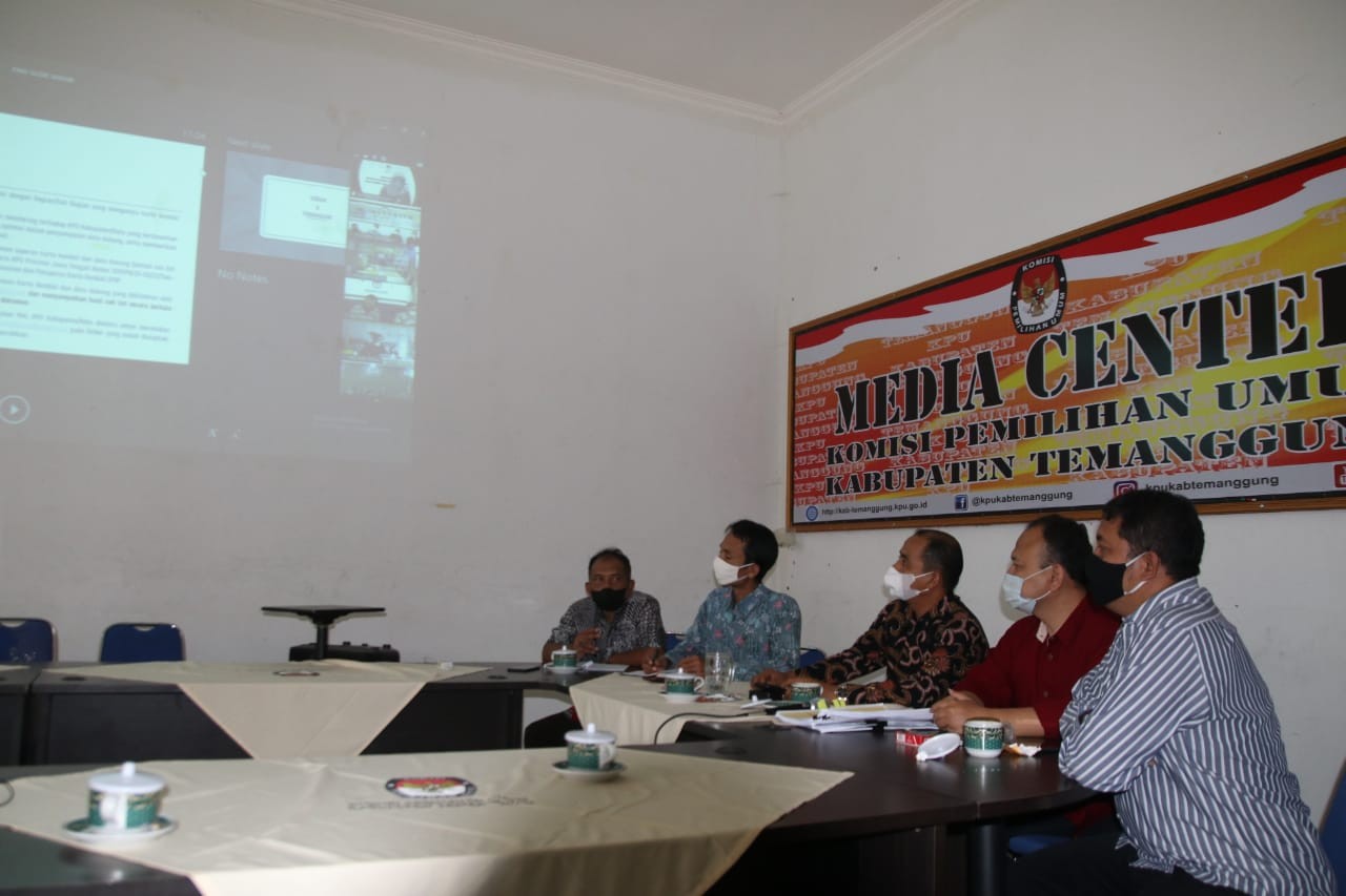 Demikian diungkapkan Sekretaris KPU Provinsi Jateng, Sri Lestariningsih, ketika menyampaikan paparan pada Rapat Kerja Evaluasi Pelaporan Kartu Kendali SPIP bulan Januari, Februari dan Maret 2021 secara daring, yang diikuti 35 KPU Kabupaten/Kota se-Jateng, Jum’at (11/6). Dari KPU Kabupaten Temanggung yang mengikuti kegiatan tersebut ialah Ketua, Anggota beserta Sekretaris dan jajarannya. Dengan tempat rapat daring di Media Center KPU Temanggung.