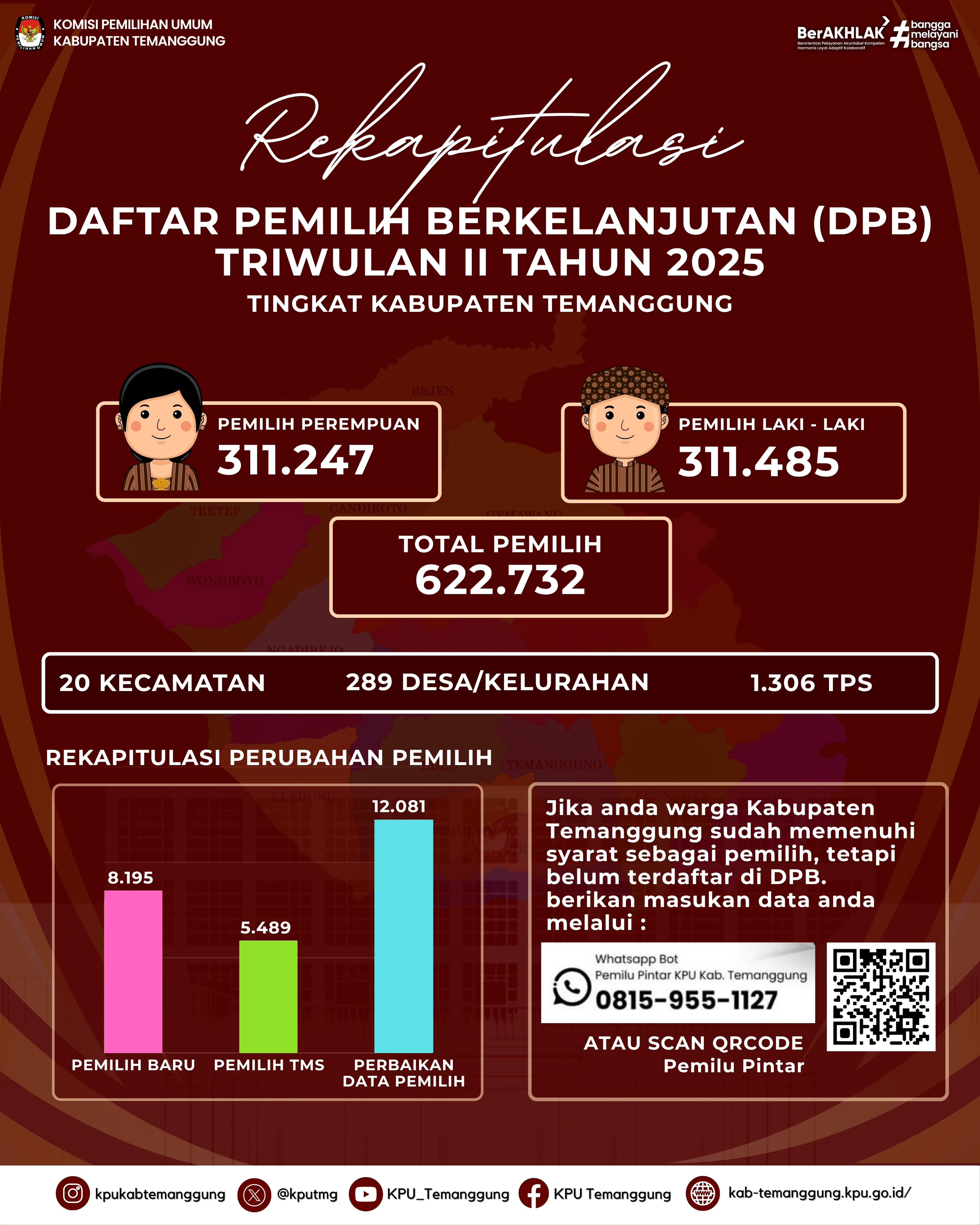 KPU Kabupaten Temanggung mengumumkan kepada publik mengenai perubahan daftar pemilih secara periodik yang dapat diunduh melalui tautan di bawah ini: