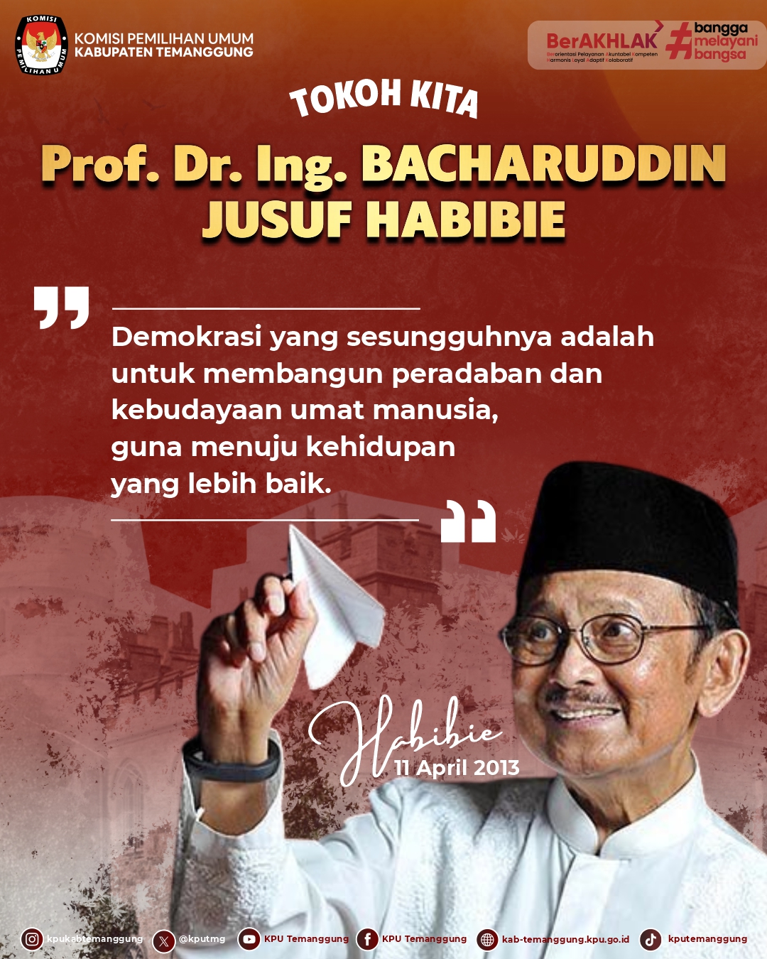 Hai #TemanPemilih, hari ini KPU Kab. Temanggung mengajak teman semua untuk mengenal lebih jauh sosok salah satu tokoh Bangsa Indonesia, Presiden Habibie