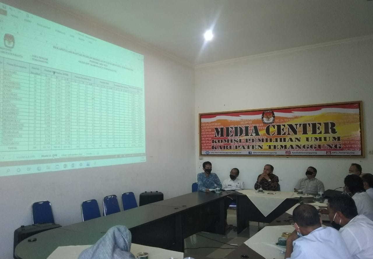 Demikian terungkap dalam rapat pleno rekapitulasi daftar pemilih berkelanjutan tahun 2021 periode Mei 2021, yang digelar KPU Kabupaten Temanggung di ruang rapat kantor setempat, Kamis (27/5). Rapat pleno dipimpin Ketua KPU Kabupaten Temanggung, M Yusuf Hasyim, dan dihadiri seluruh komisioner dan jajaran sekretariat lembaga tersebut.