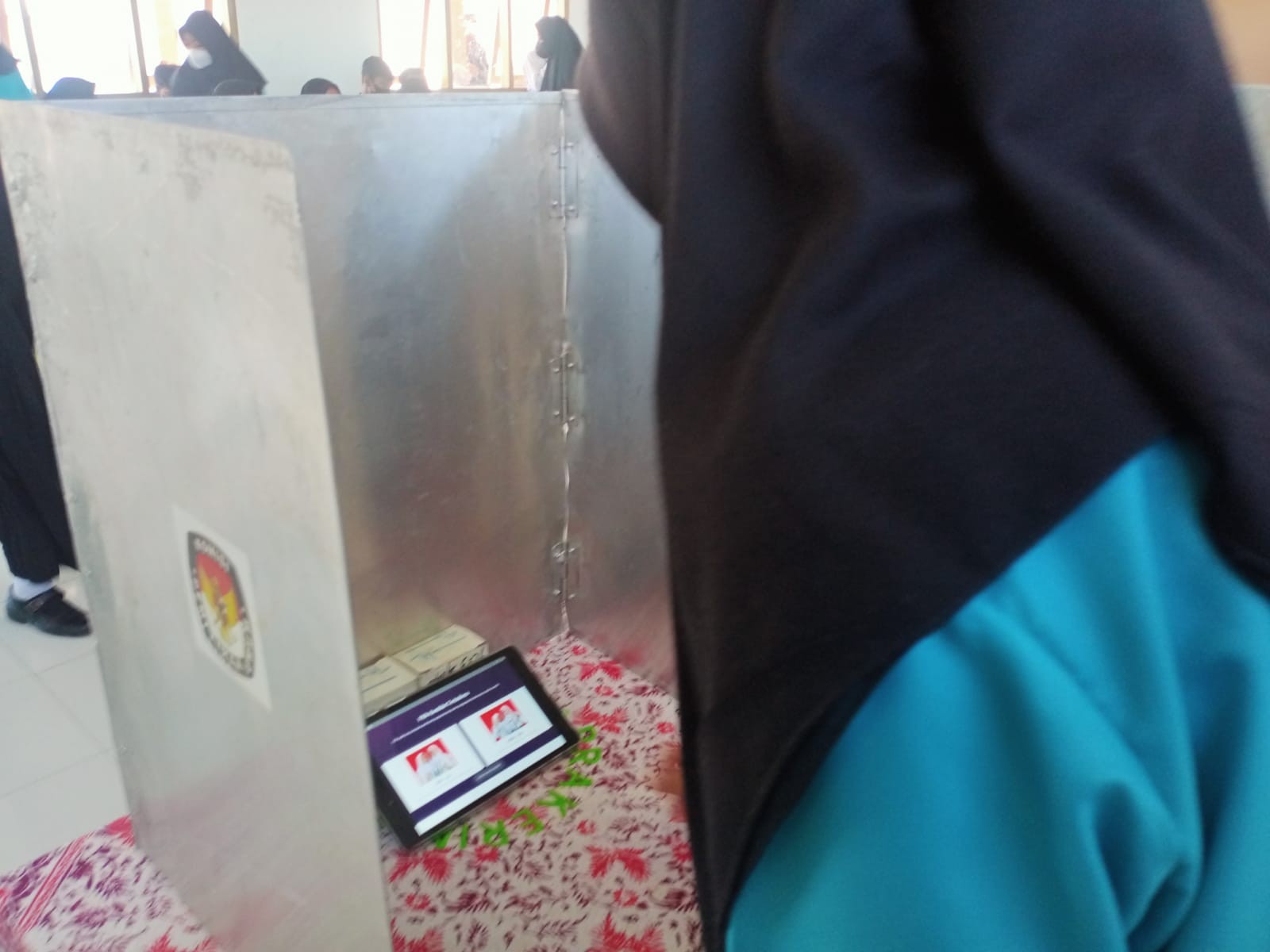 “Ya ini jadi lebih praktis karena tinggal pencet (memilih calon dengan menekan pada layar smartphone), tidak lagi (mencoblos) pakai paku,” cerita Khusna.