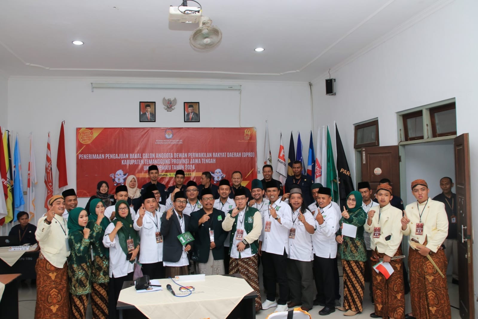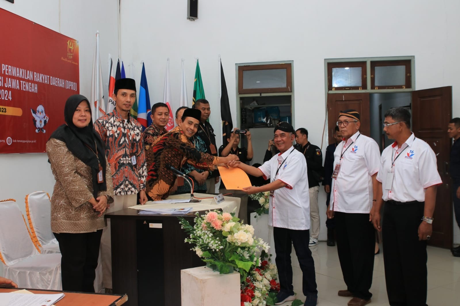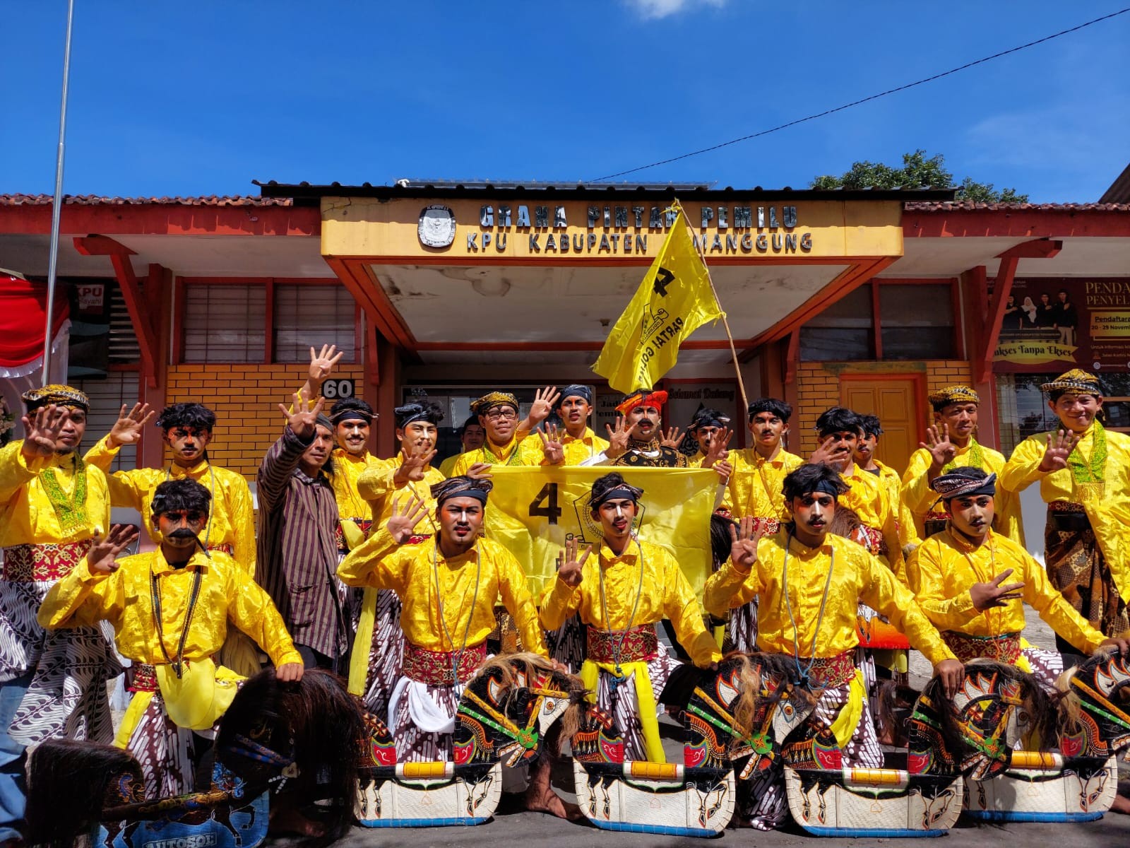Temanggung- KPU Kabupaten Temanggung menerima pengajuan bakal calon Anggota DPRD dari Partai Golkar untuk Pemilu 2024, Minggu (14/5), bertempat di aula kantor setempat. Pengajuan bakal calon dari partai Golkar diiringi kesenian kuda lumping atau jarang kepang yang dibawakan sejumlah penari putra. Mereka tampil di halaman depan kantor KPU Temanggung hingga proses pengajuan bakal calon di aula selesai. “Kami mengajukan bakal calon Anggota DPRD Kabupaten Temanggung sesuai dengan ketentuan yaitu sebanyak 45 bakal calon di 6 daerah pemilihan dengan rata-rata keterwakilan perempuan di setiap dapil sudah di atas 30 persen,” ungkap Ketua DPD Partai Golkar, M. Al Khadziq saat hadir dalam pengajuan bakal calon tersebut. Dalam pengajuan tersebut, Golkar telah memenuhi ketentuan pengajuan bakal calon, salah satunya pemenuhan kuota minimal 30 persen keterwakilan perempuan serta pemenuhan susunan calon perempuan dengan zipper system. Berdasarkan hasil pemeriksaan dokumen syarat pengajuan, KPU Kabupaten Temanggung menyatakan pengajuan Bakal Calon Anggota DPRD Kabupaten Temanggung dari Partai Golkar lengkap dan benar. “Berdasarkan hasil pemeriksaan, status pengajuan bakal calon Anggota DPRD Kabupaten Temanggung dinyatakan lengkap dan diterima,” ungkap Ketua KPU Kabupaten Temanggung, M. Yusuf Hasyim saat membacakan Berita Acara Penerimaan Pengajuan. Untuk diketahui KPU Kabupaten Temanggung menerima pengajuan bakal calon Anggota DPRD Kabupaten Temanggung mulai tanggal 1 Mei s.d. 14 Mei 2023 sesuai dengan Peraturan KPU Nomor 10 Tahun 2023. Terhadap Partai Politik yang dinyatakan lengkap dan diterima, selanjutnya akan dilakukan verifikasi administrasi. []