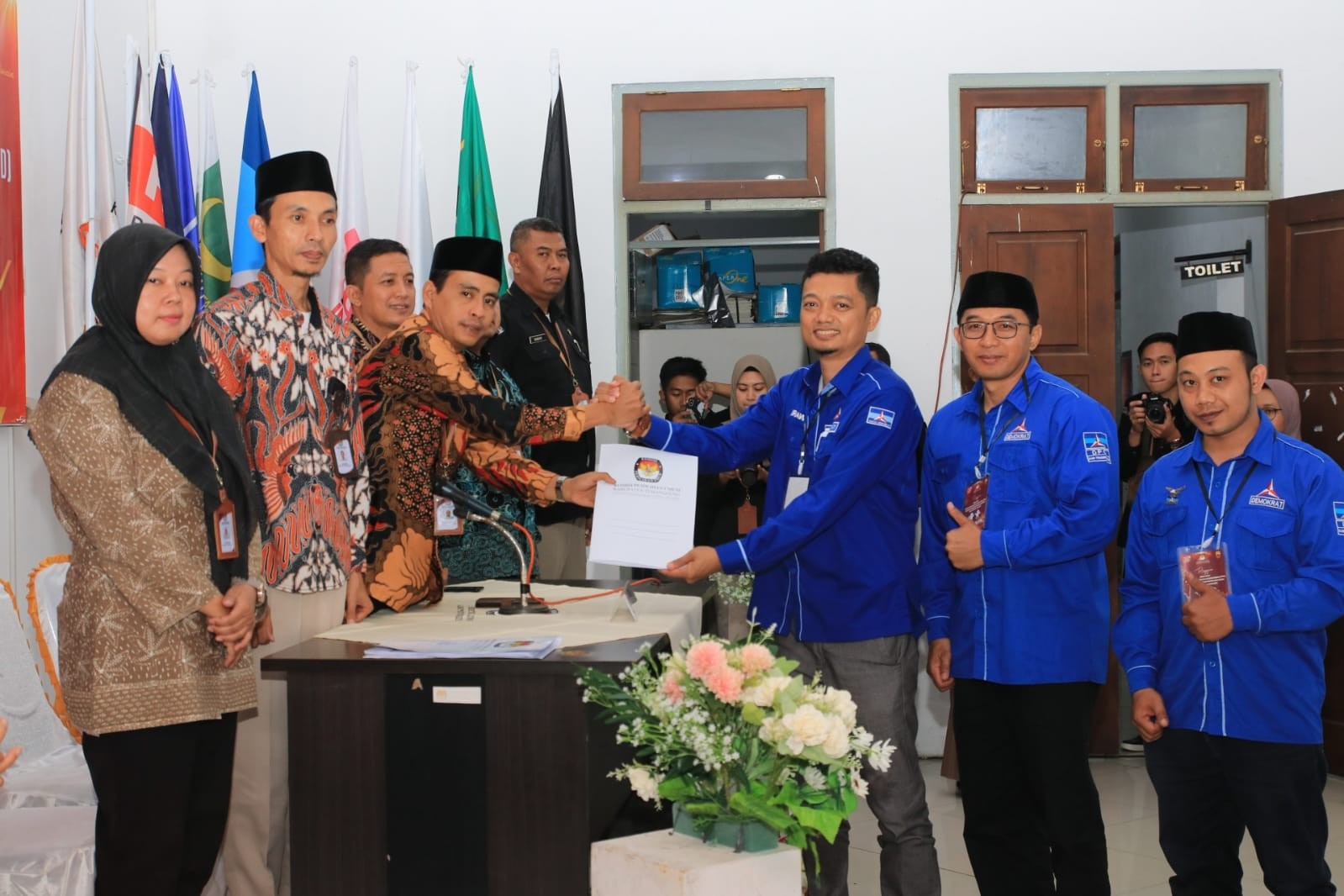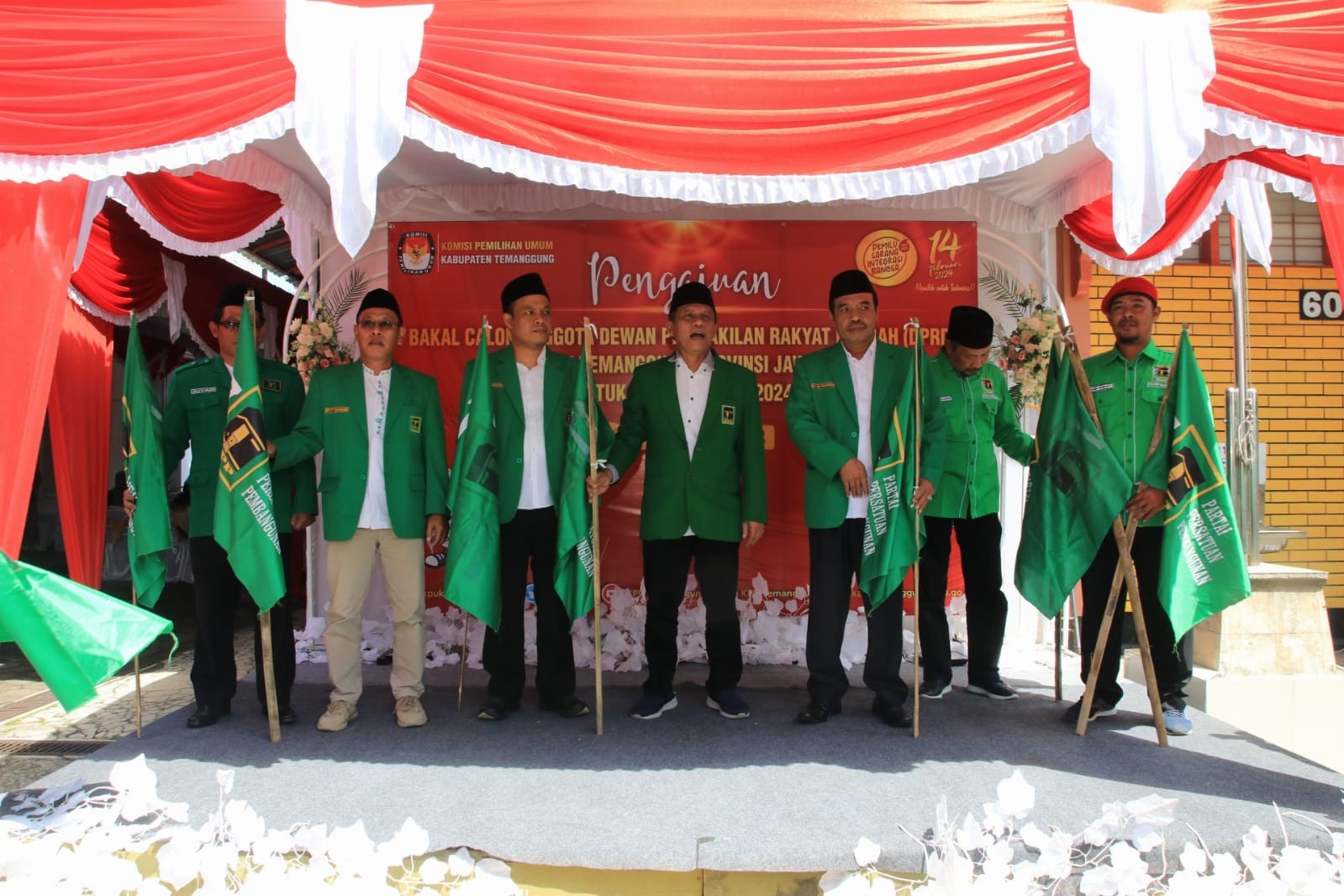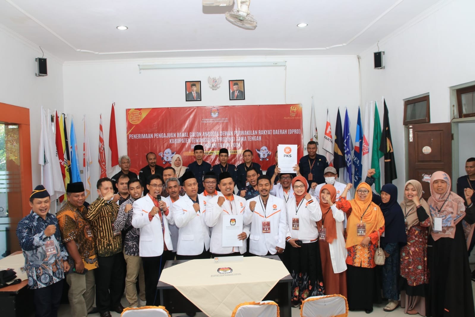 Temanggung- KPU Kabupaten Temanggung menerima pengajuan bakal calon Anggota DPRD dari Partai Golkar untuk Pemilu 2024, Minggu (14/5), bertempat di aula kantor setempat. Pengajuan bakal calon dari partai Golkar diiringi kesenian kuda lumping atau jarang kepang yang dibawakan sejumlah penari putra. Mereka tampil di halaman depan kantor KPU Temanggung hingga proses pengajuan bakal calon di aula selesai. “Kami mengajukan bakal calon Anggota DPRD Kabupaten Temanggung sesuai dengan ketentuan yaitu sebanyak 45 bakal calon di 6 daerah pemilihan dengan rata-rata keterwakilan perempuan di setiap dapil sudah di atas 30 persen,” ungkap Ketua DPD Partai Golkar, M. Al Khadziq saat hadir dalam pengajuan bakal calon tersebut. Dalam pengajuan tersebut, Golkar telah memenuhi ketentuan pengajuan bakal calon, salah satunya pemenuhan kuota minimal 30 persen keterwakilan perempuan serta pemenuhan susunan calon perempuan dengan zipper system. Berdasarkan hasil pemeriksaan dokumen syarat pengajuan, KPU Kabupaten Temanggung menyatakan pengajuan Bakal Calon Anggota DPRD Kabupaten Temanggung dari Partai Golkar lengkap dan benar. “Berdasarkan hasil pemeriksaan, status pengajuan bakal calon Anggota DPRD Kabupaten Temanggung dinyatakan lengkap dan diterima,” ungkap Ketua KPU Kabupaten Temanggung, M. Yusuf Hasyim saat membacakan Berita Acara Penerimaan Pengajuan. Untuk diketahui KPU Kabupaten Temanggung menerima pengajuan bakal calon Anggota DPRD Kabupaten Temanggung mulai tanggal 1 Mei s.d. 14 Mei 2023 sesuai dengan Peraturan KPU Nomor 10 Tahun 2023. Terhadap Partai Politik yang dinyatakan lengkap dan diterima, selanjutnya akan dilakukan verifikasi administrasi. []