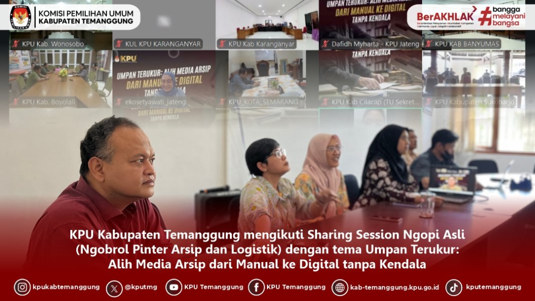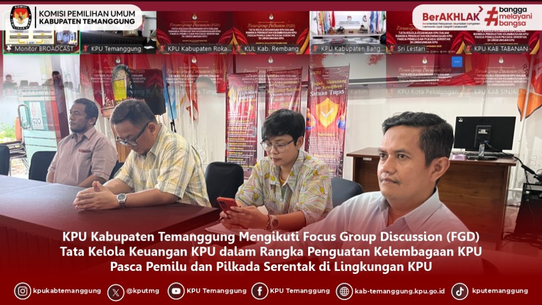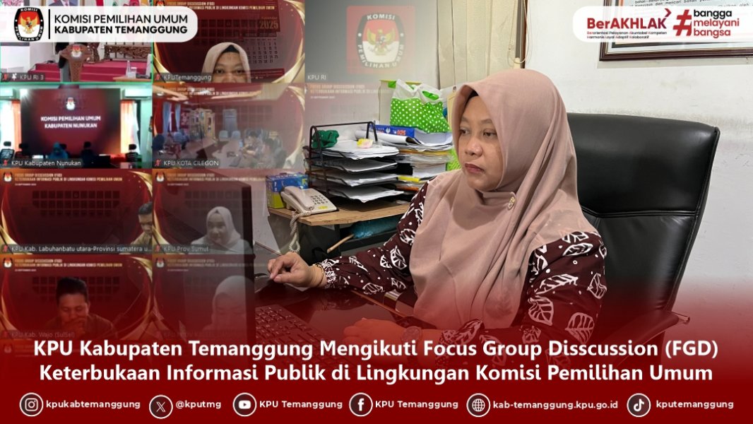 TEMANGGUNG - PPID KPU Kabupaten Temanggung mengikuti Focus Group Disscussion (FGD) Keterbukaan Informasi di Lingkungan KPU secara daring, Selasa (23/09/2025) Turut hadir dalam kesempatan tersebut Kadiv Sosdiklih Parmas KPU RI August Mellaz, Kadiv Hukum dan Pengawasan KPU RI, Iffa Rosita Dalam sambutannya, Iffa menuturkan bahwa kegiatan ini menjadi forum penguatan kelembagaan di lingkungan KPU. “Penguatan pengelolaan informasi dan dokumentasi sangat diperlukan agar prinsip-prinsip dalam pengelolaan informasi dan dokumentasi dapat diimplementasikan dengan benar” tegasnya Deputi Bidang Dukungan Teknis, Eberta Kawima menyampaikan urgensi diselenggarakannya FGD, yakni pemahaman regulasi secara tepat, khususnya terkait informasi yang dikecualikan. Selain itu juga dalam rangka memperkuat PPID dalam melaksanakan keterbukaan informasi publik yang transparan dan akuntabel, saling berbagi pengalaman serta antisipasi dan memahami tantangan yang beragam hingga mendapatkan solusi yang tepat KPU RI sebagai penyelenggara kegiatan menghadirkan narasumber Anggota Komisi Informasi Pusat, Handoko Agung Saputro dan Direktur Tera Indonesia Consulting, Arbain. Kedua narasumber mengulas secara mendalam terkait Pengelolaan Informasi Dikecualikan di KPU #Temanggung #kputemanggung #kpumelayani #keterbukaaninformasi #informasi #publik #ppid