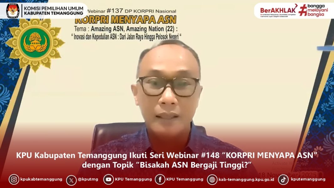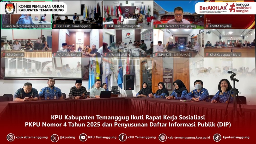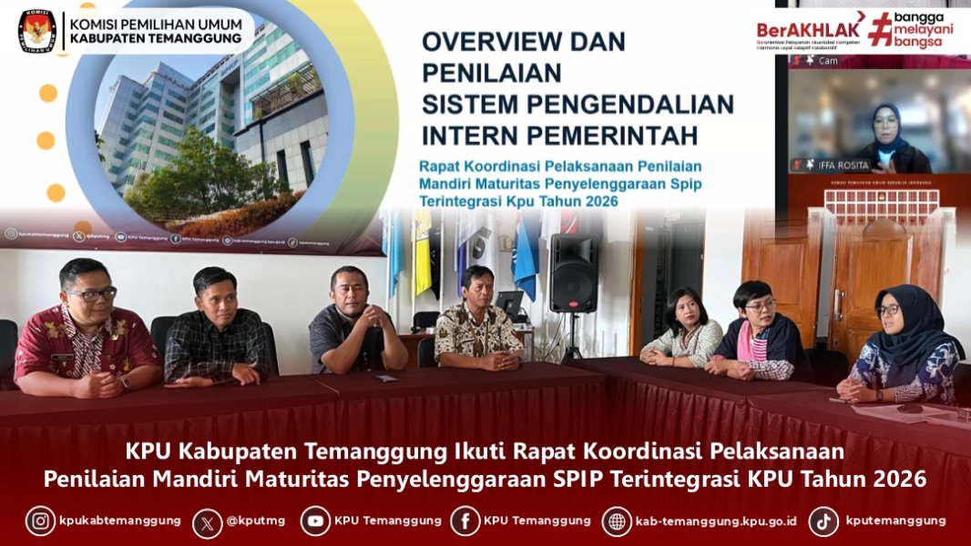TEMANGGUNG - KPU Kabupaten Temanggung berpartisipasi dalam kegiatan Rapat Koordinasi Pelaksanaan Penilaian Mandiri Maturitas Penyelenggaraan SPIP Terintegrasi KPU Tahun 2026 yang diselenggarakan oleh KPU RI secara hybrid pada Jumat, (30/01/2026)