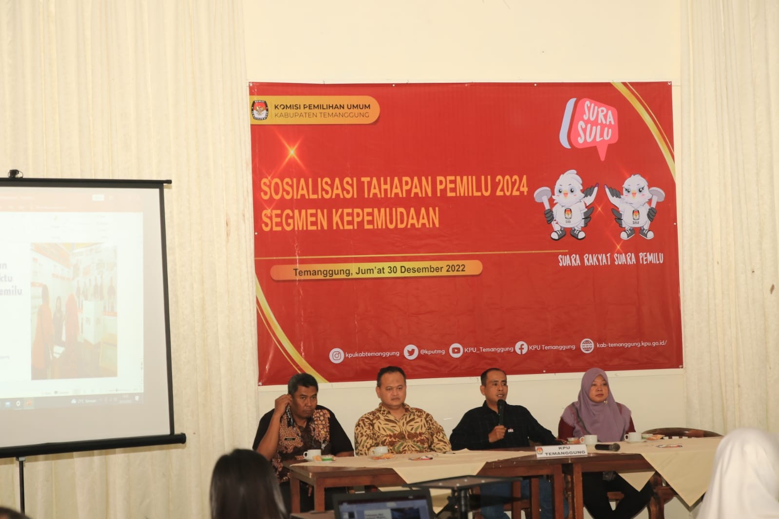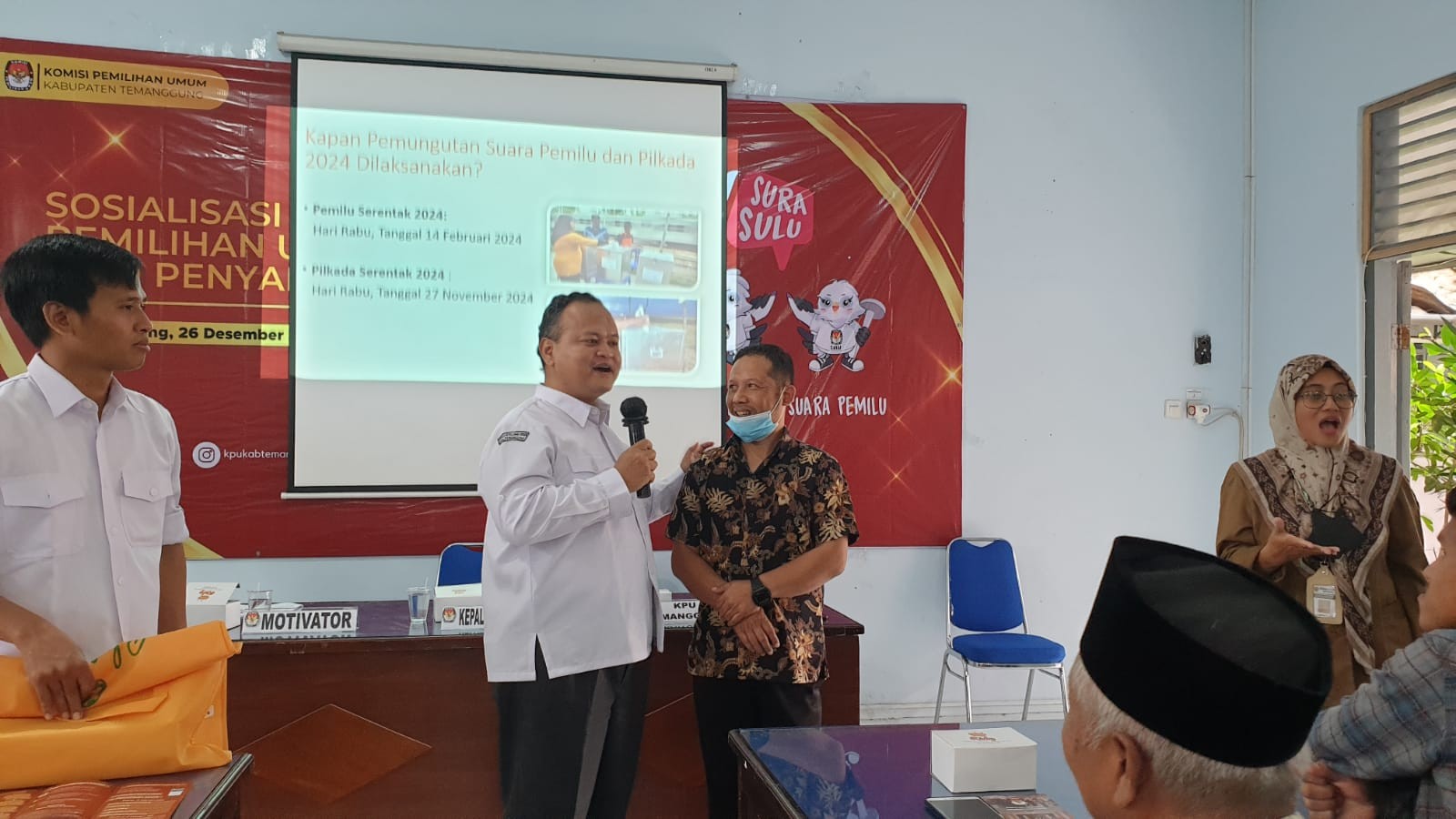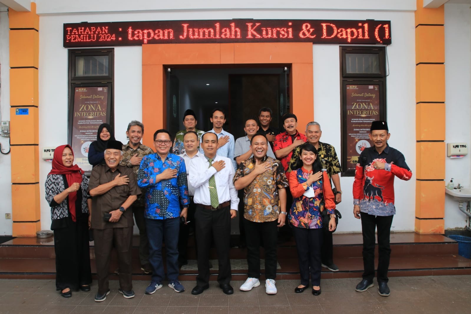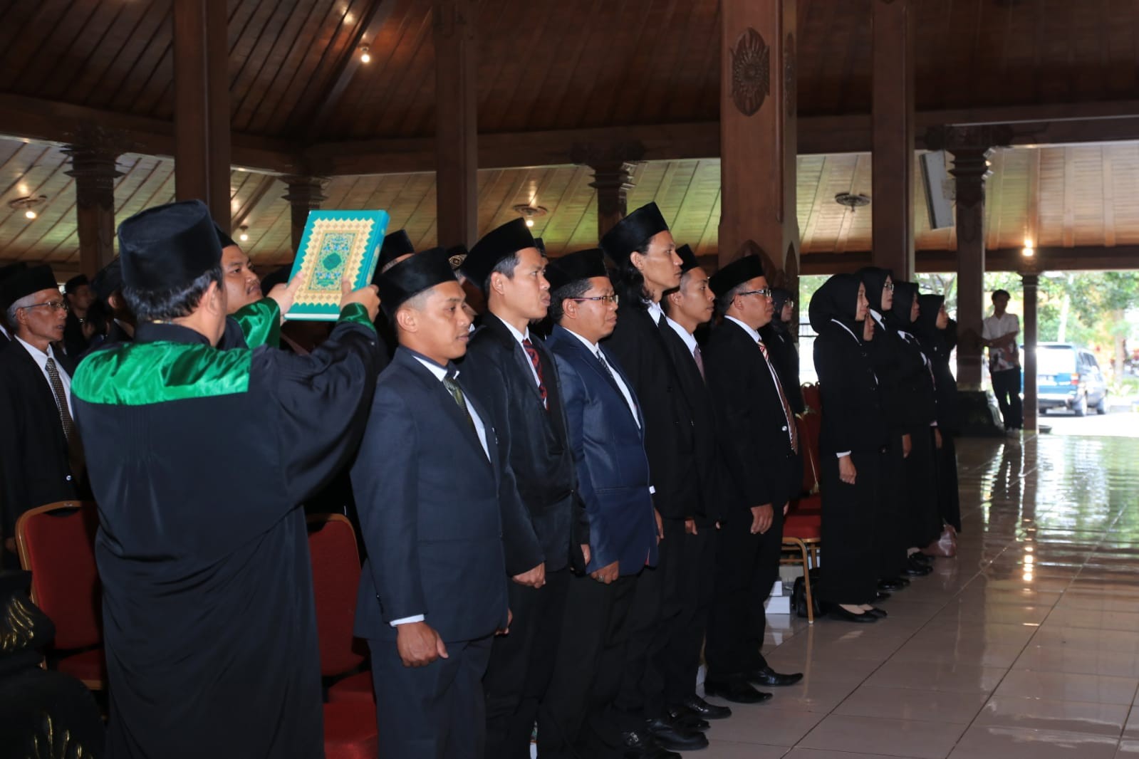 Temanggung- 100 orang Panitia Pemilihan Kecamatan (PPK) yang berasal dari 20 kecamatan di Kabupaten Temanggung dilantik KPU Kabupaten Temanggung, Rabu (4/1), bertempat di Pendopo Pengayoman Temanggung. Dalam pelantikan ini, Ketua KPU Kabupaten Temanggung, M. Yusuf Hasyim berpesan agar PPK selalu menjaga integritas dan menjaga jarak yang sama dengan peserta Pemilu. “Ini merupakan hasil seleksi terbaik, saya ucapkan selamat untuk PPK terpilih. Selamat mengemban amanah penyelenggaraan Pemilu Serentak Tahun 2024. Jaga selalu integritas, segera bangun konsolidasi dan komunikasi dengan sekretariat PPK, dengan stakeholder tingkat kecamatan,” tegas Yusuf. Yusuf juga menyampaikan agar PPK terus meningkatkan kompetensinya dengan membaca dan memahami regulasi Pemilu yang saat ini berlaku, yaitu Undang-Undang Nomor 7 Tahun 2017, Peraturan-Peraturan KPU serta regulasi lainnya terkait kepemiluan. Dalam pelantikan ini, KPU Kabupaten Temanggung melalui Ketua KPU Kabupaten Temanggung memandu sumpah/janji PPK, dan diikuti oleh PPK yang hadir. Selain itu, PPK juga berkomitmen menjaga integritas melalui penandatanganan dan pembacaan Pakta Integritas. PPK yang dilantik bersumpah akan menjalankan tugas dan wewenang dan bekerja secara sungguh-sungguh, jujur, adil dan cermat demi suksesnya Pemilu 2024 dan tegaknya demokrasi dan keadilan serta mengutamakan kepentingan negara daripada kepentingan pribadi maupun golongan. Hadir dalam pelantikan PPK, Bupati Temanggung beserta Forkopimda Kabupaten Temanggung, seluruh camat beserta forkopimda tingkat kecamatan di Kabupaten Temanggung, serta Anggota KPU Provinsi Jawa Tengah dan Bawaslu Kabupaten Temanggung. Bupati Temanggung, HM Al Khadziq, menyampaikan Pemerintah Kabupaten Temanggung siap untuk mendukung kerja PPK dalam menyelenggarakan setiap tahapan Pemilu. “Kami sudah meminta kepada Para Camat yang juga hadir saat ini serta OPD untuk menyiapkan ruangan bagi PPK, internet, dan fasilitas lainnya,” ungkap Al Khadziq. Transparansi dalam menyelenggarakan setiap tahapan Pemilu juga menjadi satu hal penting yang wajib dilakukan PPK terpilih. “Ketika seleksi PPK, kita sudah mengedepankan transparansi. Oleh karena itu, bekerjalah secara baik, transparan dan berintegritas. Jangan sampai ada kecurangan dalam Pemilu,” tegas Anggota KPU Provinsi Jawa Tengah, M. Taufiqurrahman saat memberikan pengarahan kepada PPK terpilih. []