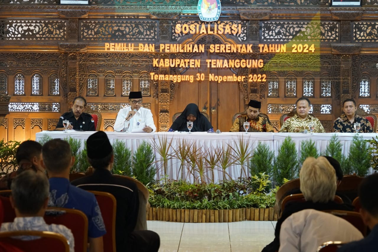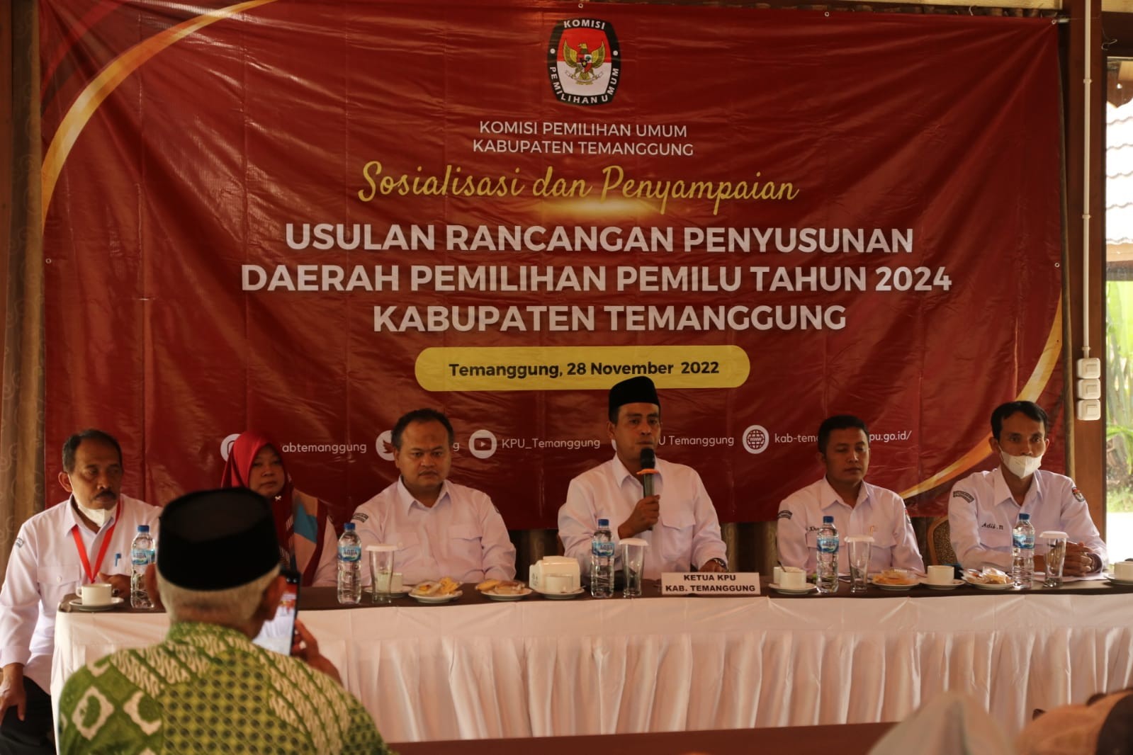 Temanggung- KPU Temanggung menggelar sosialisasi usulan rancangan penyusunan daerah pemilihan Pemilu Anggota DPRD Kabupaten Temanggung Tahun 2024 kepada Bawaslu, dinas dan instansi, organisasi masyarakat dan keagamaan, akademisi, serta partai politik calon peserta Pemilu 2024 di lingkungan Kabupaten Temanggung, Senin (28/11), bertempat di Jambu Klutuk Resort. “Dalam kesempatan ini, KPU Temanggung ingin menyampaikan usulan rancangan penyusunan daerah pemilihan untuk Pemilu Anggota DPRD Kabupaten Temanggung Tahun 2024 yang telah kita susun berdasarkan 7 (tujuh) prinsip penyusunan daerah pemilihan sesuai dengan ketentuan Undang-Undang dan Peraturan KPU,” jelas Mukhamad Yusuf Hasyim, Ketua KPU Kabupaten Temanggung, saat memberikan sambutan pembukaan dalam kegiatan tersebut. Mengingat jumlah penduduk Kabupaten Temanggung masih kurang dari 1 juta penduduk, yaitu sebesar 801.267 penduduk, maka sesuai dengan Undang-Undang Nomor 7 Tahun 2017 dan Keputusan KPU Nomor 457 Tahun 2022, maka jumlah alokasi kursi di Temanggung masih sama dengan Pemilu 2019 yaitu sebanyak 45 kursi. Selain itu juga karena tidak adanya dapil pada Pemilu sebelumnya yang bertentangan dengan prinsip-prinsip penataan daerah pemilihan dan tidak ada kondisi khusus berupa pemekaran wilayah atau bencana alam, maka KPU Kabupaten Temanggung menyusun daerah pemilihan dan alokasi kursi yang sama seperti Pemilu 2019. “Usulan Dapil Pemilu 2024 saat ini sama dengan Pemilu 2019 yaitu 6 dapil dan dalam penyusunannya telah memenuhi 7 prinsip, yaitu kesetaraan nilai suara, ketaatan pada sistem pemilu proporsional, proposionalitas, integralitas wilayah, conterminous, kohesivitas, dan kesinambungan,” jelas Khadhiq Widianto, Anggota KPU Kabupaten Temanggung. Adapun usulan rancangan Dapil Pemilu DPRD Kabupaten Temanggung adalah sebagai berikut Dapil 1 dengan 9 kursi terdiri dari Kecamatan Tembarak, Temanggung, Tlogomulyo, dan Selopampang, Dapil 2 dengan 9 kursi terdiri dari Kecamatan Bulu, Parakan, Bansari, dan Kledung, Dapil 3 dengan 6 kursi terdiri dari Kecamatan Tretep, Candiroto, Bejen dan Wonoboyo. Dapil 4 dengan 7 kursi terdiri dari Kecamatan Ngadirejo, Jumo, dan Gemawang. Dapil 5 dengan 6 kursi terdiri dari Kecamatan Kandangan dan Kedu, Dapil 6 dengan 8 kursi terdiri dari Kecamatan Pringsurat, Kaloran dan Kranggan. KPU Temanggung juga telah mengumumkan Rancangan Penataan Daerah Pemilihan dan Alokasi Kursi Anggota DPRD Temanggung dalam Pemilu Tahun 2024 melalui Pengumuman Nomor 397/PL.01.3-Pu/3323/2022 melalui papan pengumuman, media sosial dan website KPU Temanggung. “Masyarakat dapat memberikan masukan dan tanggapan terhadap rancangan dapil tersebut dengan datang langsung ke kantor KPU Temanggung di Jalan Kartini Nomor 60 atau juga disampaikan melalui laman helpdesk.kpu.go.id/tanggapan,” tutup Khadhiq. []