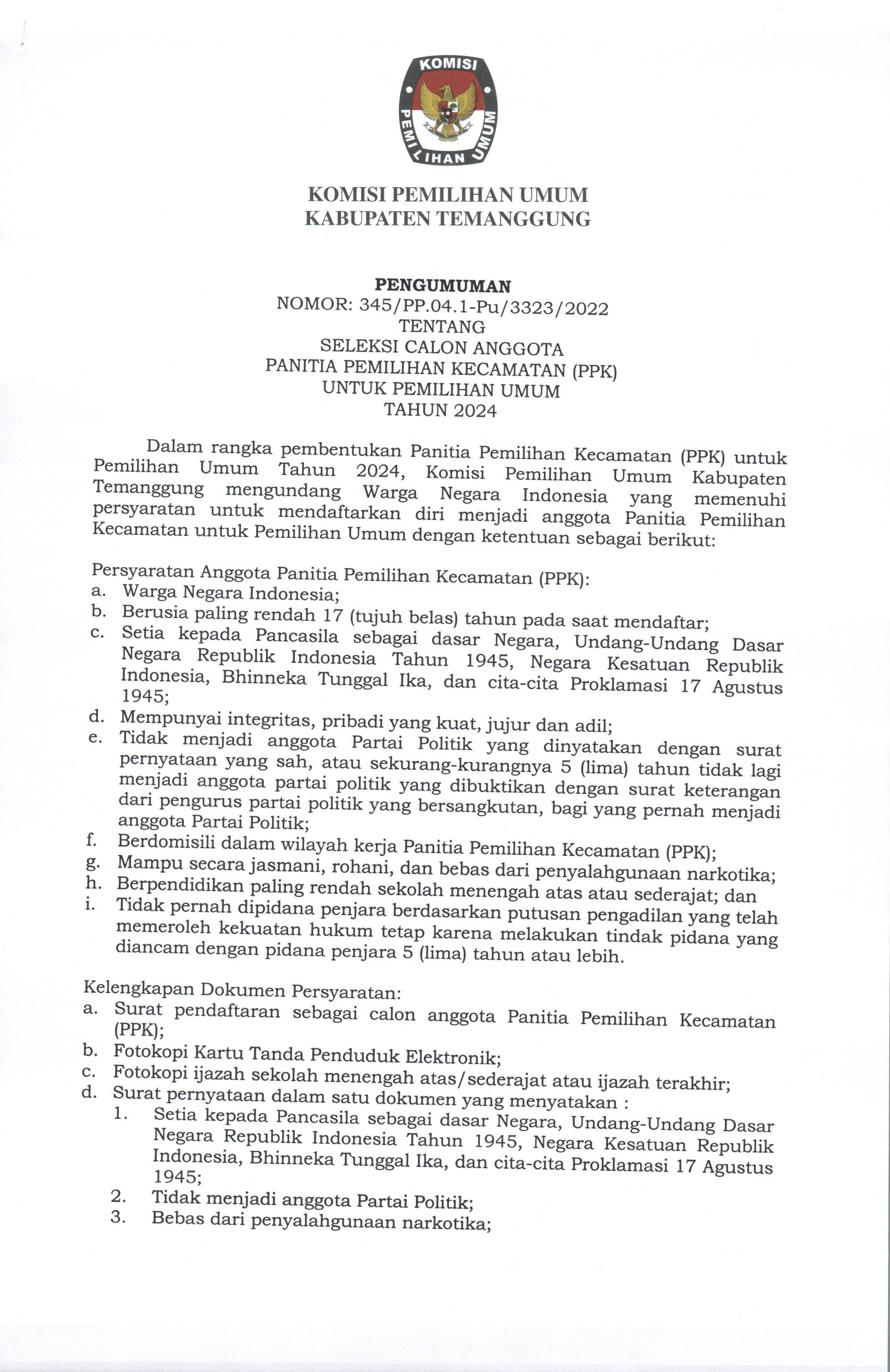 Temanggung - KPU Kabupaten Temanggung menggelar rapat koordinasi sebagai bentuk sosialisasi regulasi tahapan Pemilu 2024, Senin (14/11), bertempat di aula kantor setempat. Dalam kesempatan ini, Anggota KPU Divisi Hukum dan Pengawasan, Adib Masykuri menyampaikan beberapa Peraturan KPU sebagai salah satu dasar hukum penyelenggaraan tahapan Pemilu 2024 telah diterbitkan. “KPU telah menerbitkan beberapa peraturan KPU yang menjadi dasar hukum penyelenggaraan tahapan Pemilu, antara lain ada Peraturan KPU Nomor 3 Tahun 2022 tentang Tahapan dan Jadwal Penyelenggaraan Pemilu 2024, kemudian Peraturan KPU Nomor 4 Tahun 2022 yang menjadi dasar hukum pelaksanaan pendaftaran, verifikasi dan penetapan Partai Politik Peserta Pemilu Anggota DPR dan DPRD,” papar Adib. KPU juga telah menerbitkan Peraturan KPU Nomor 6 Tahun 2022 tentang Penataan Daerah Pemilihan dan Alokasi Kursi DPRD Kabupaten/Kota dalam Pemilu, Peraturan KPU Nomor 7 Tahun 2022 tentang Penyusunan Daftar Pemilih dalam Penyelenggaraan Pemilu dan SIDALIH, serta terakhir Peraturan KPU Nomor 8 Tahun 2022 tentang Pembentukan dan Tata Kerja Badan Adhoc Penyelenggara Pemilu dan Pemilihan Gubernur dan Wakil Gubernur, Bupati dan Wakil Bupati, dan Walikota dan Wakil Walikota. “Publik dan peserta pemilu dalam hal ini calon dan partai politik dapat mengakses peraturan tersebut di portal jdih.kpu.go.id,” lanjut Adib. Dalam portal JDIH tersebut, selain memuat peraturan KPU, juga terdapat dokumen berupa Undang-Undang Pemilu dan Keputusan KPU yang dapat dibaca dan diunduh. Dalam rakor yang dihadiri Bawaslu Kabupaten Temanggung dan perwakilan Partai Politik ini juga disampaikan beberapa tahapan yang sedang dilakukan KPU Kabupaten Temanggung, seperti verifikasi partai politik dan persiapan pembentukan badan adhoc penyelenggara pemilu tahun 2024. “Berdasarkan Keputusan KPU Nomor 460 Tahun 2022, KPU Kabupaten Temanggung saat ini sedang dalam tahapan verifikasi administrasi perbaikan untuk 4 (empat) partai politik sebagai tindak lanjut putusan Bawaslu, yaitu verifikasi administrasi perbaikan untuk Partai PRIMA, Republik, Republiku Indonesia dan Parsindo” ungkap Khadhiq Widianto, Anggota KPU Divisi Teknis Penyelenggara Pemilu. KPU Kabupaten Temanggung juga saat ini sedang melakukan persiapan pendaftaran untuk badan adhoc penyelenggara Pemilu Tahun 2024 di tingkat kecamatan yaitu PPK dan di tingkat desa/kelurahan, yaitu PPS. “Peraturan KPU sebagai landasan hukum pembentukan badan adhoc telah diterbitkan, yang salah satunya mengatur prasyarat untuk menjadi badan adhoc. Pendaftaran badan adhoc ini nanti akan dilakukan melalui Sistem Informasi Anggota KPU dan Badan Adhoc (SIAKBA),” jelas Henry Sofyan Rois, Anggota Divisi Sosialisasi, Pendidikan Pemilih dan SDM. Selain itu, Masithoh Dian Setyatuhu, Anggota KPU Divisi Perencanaan, Data dan Informasi juga menyampaikan KPU memfasilitasi publik untuk dapat mengecek apakah yang bersangkutan telah terdaftar sebagai Pemilih Tahun 2024. “yaitu melalui portal publik dengan alamat https://cekdptonline.kpu.go.id/, masyarakat dapat mengecek apakah sudah terdaftar atau belum. Apabila belum dapat disampaikan ke KPU setempat untuk dapat kami tindaklanjuti,” tutup Dian. []