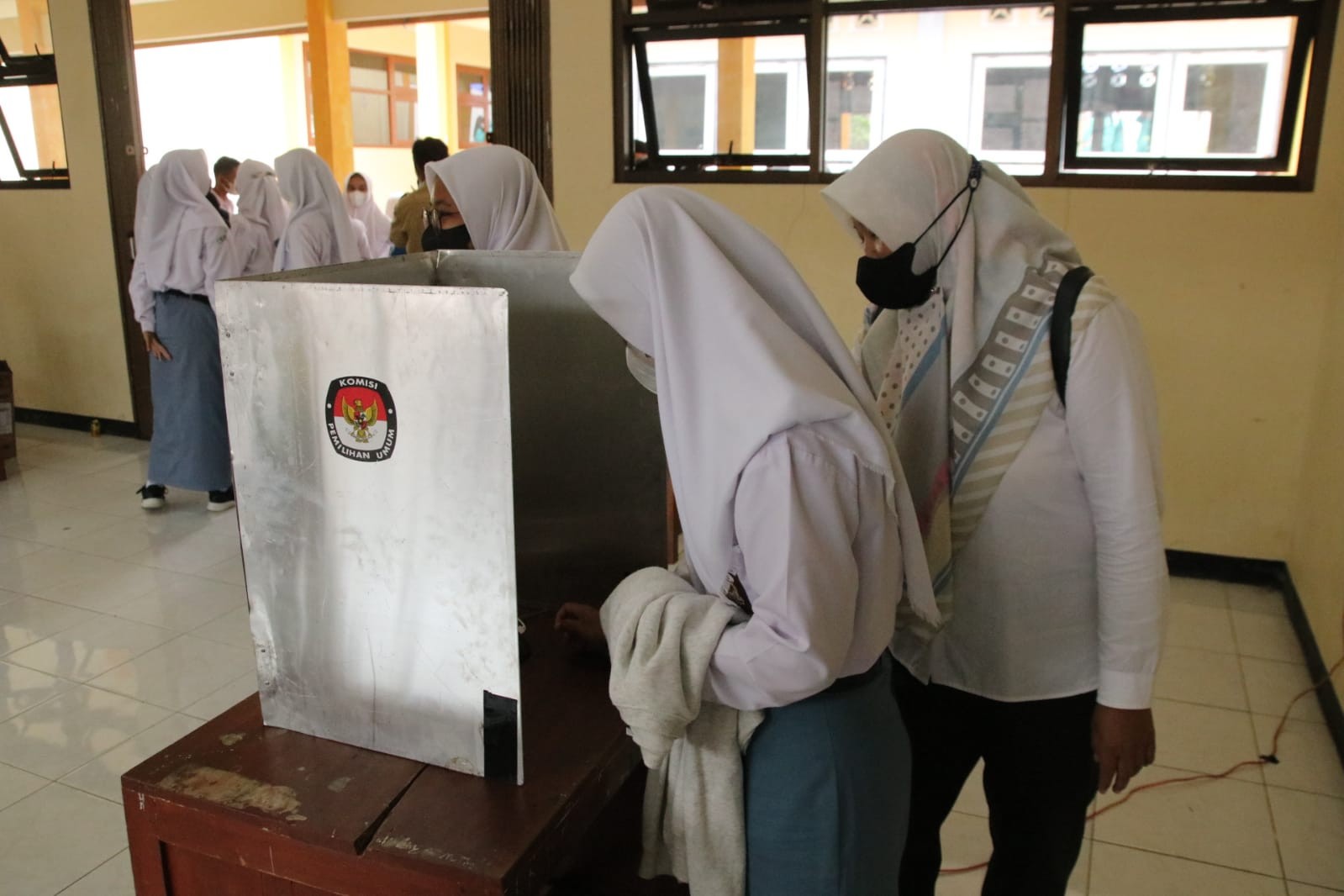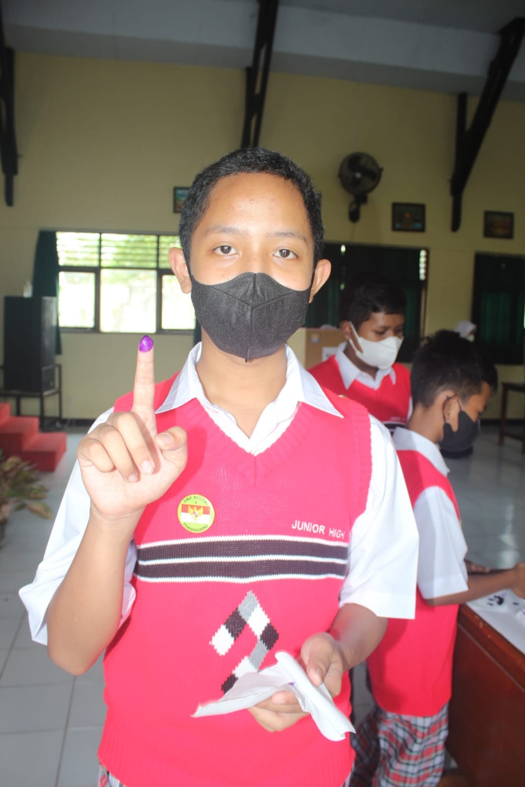 Temanggung- KPU Kabupaten Temanggung kembali memfasilitasi Pemilihan Ketua OSIS (Pilketos) melalui e-voting atau pemberian suara secara elektronik. Kali ini, KPU Kabupaten Temanggung bekerjasama dengan SMPN 2 Temanggung untuk menggelar Pilketos melalui e-voting, Senin (31/1). Para siswa pun mengaku antusias menggunakan teknologi e-voting dalam Pilketos kali ini. “Karena belum pernah menggunakan e-voting, baru pertama kali, jadi ini antusias sekali,” ungkap Davinosa, salah satu siswi kelas VIII SMPN 2 Temanggung. Begitu pula yang dirasakan Aditya Firmansyah, siswa kelas VIII. “Ya kalau dari angka 1 sampai angka 10, ya di angka 9 antusiasnya,” kata Aditya. Kemudahan dan kecepatan dalam Pemilihan Ketua OSIS ini juga menjadi pengalaman yang dirasakan para siswa usai memilih menggunakan e-voting. “E-voting ini sangat mudah ya, cepat dalam memilih. Tadi pas memilih juga tidak ada kesulitan dan mudah dipahami,” tutur Latifa Alya, siswa kelas VIII. Berbeda dengan pemilihan ketua OSIS sebelumnya, menurut Raihan, siswa kelas IX, pemilihan kali ini dinilai lebih cepat. “Iya kalau dulu antri lama ya, terus juga masih menggunakan kertas. Kalau sekarang lebih simple dan lebih cepat,” lanjutnya. Kemudahan dalam e-voting Pilketos tahun ini juga dirasakan, Aida Nafisa dan Fahreza, siswi kelas VII. “Iya gampang, tinggal pencet pilihan kita di layar,” kata Fahreza usai menggunakan hak suaranya. Kepastian terhadap hasil hitung suara juga dirasakan Gazalla, siswi kelas VII sebagai salah satu keunggulan e-voting. Menurutnya, dengan penggunaan e-voting yang hasil perolehan suara para calon sudah dapat langsung dihitung dan diketahui, menjadikan pemilihan kali ini dipandang lebih adil. “Ya (dengan e-voting) jadi lebih enak, lebih adil dan tidak curang. Jumlahnya (suara-red) tidak dilebih-lebihkan,” lanjut Gazalla. Seperti pemilihan-pemilihan yang menggunakan e-voting sebelumnya, Pemilihan Ketua OSIS SMPN 2 Temanggung ini juga menggunakan perangkat smartphone berbasis android yang telah terinstal aplikasi e-voting. Selanjutnya, para siswa yang hadir diberikan kertas berisi barcode sebagai Ballot ID dan dipindai ke aplikasi e-voting. Setelah berhasil memindai barcode, aplikasi akan langsung mengalihkan ke laman yang berisi foto kandidat. Siswa pun langsung dapat memilih salah satu kandidat dengan menekan satu kali pada foto kandidat. Dalam Pilketos SMPN 2 Temanggung ini, tak hanya melayani para siswa yang hadir di tempat pemungutan suara, para petugas pemilihan juga mendatangi para siswi yang sedang sakit di Unit Kesehatan Sekolah (UKS). Hal ini guna menjamin penggunaan hak suara bagi seluruh siswa di SMPN 2 Temanggung. Petugas Pemilihan hadir ke UKS dengan membawa perangkat smartphone beserta printer dan tinta. Selanjutnya, para siswi dibantu petugas pemilihan menggunakan hak pilihnya di UKS melalui perangkat yang telah disediakan. Dalam Pemilihan Ketua OSIS SMPN 2 Temanggung, KPU Kabupaten Temanggung juga melakukan sosialisasi dan pendidikan pemilih kepada para siswa. Ketua KPU Kabupaten Temanggung, M. Yusuf Hasyim menegaskan pentingnya menjadi pemilih cerdas saat Pemilu 2024 nanti. “Pada tahun 2024 nanti, para siswa akan menjadi pemilih pemula. Kalian harus memilih sesuai dengan visi, misi, rekam jejak para calon agar dapat menghasilkan pemimpin yang aman. Jadilah pemimpin cerdas, karena masa depan demokrasi Indonesia ada di pundak para siswa,” tegas M. Yusuf Hasyim. []