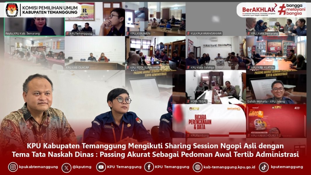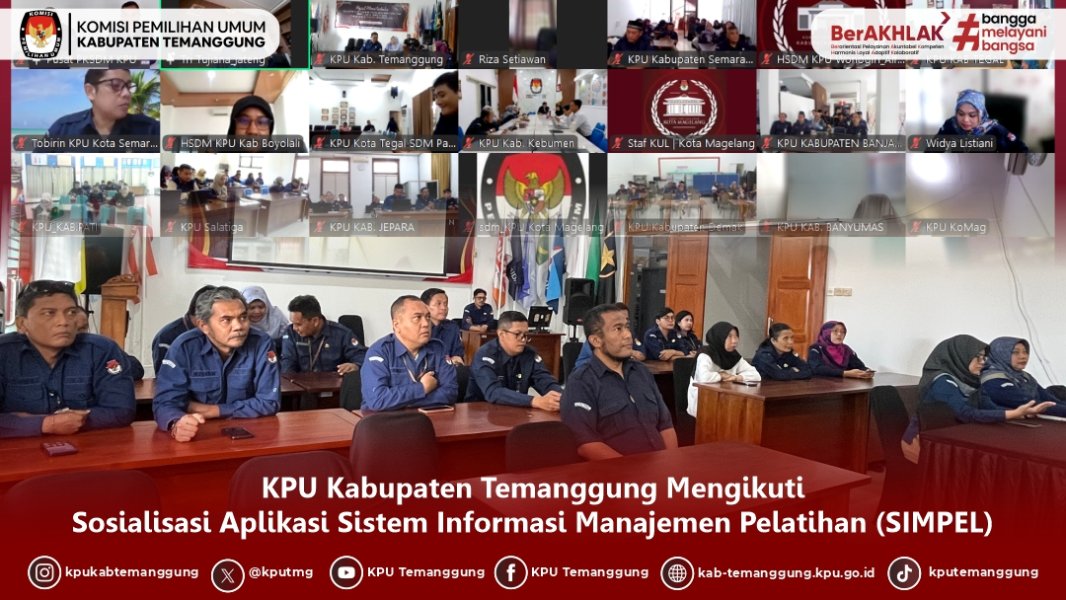 TEMANGGUNG - KPU Kabupaten Temanggung mengikuti Sosialisasi Aplikasi Sistem Informasi Manajemen Pelatihan (SiMPEL) bagi ASN pada Sekretariat KPU se-Jawa Tengah secara daring pada Selasa, (26/08/2025)
