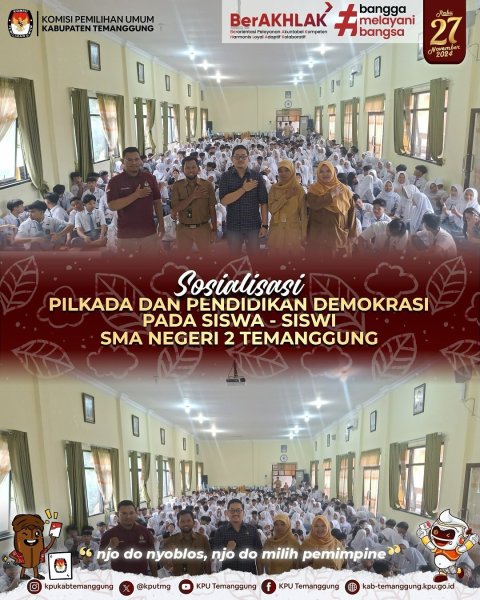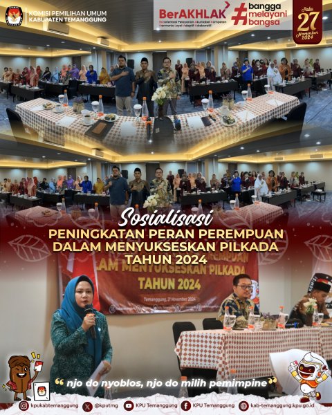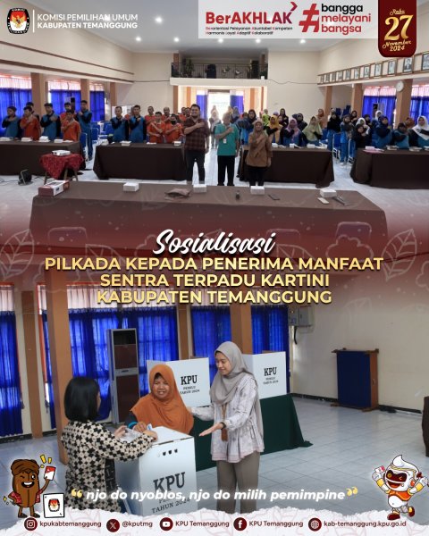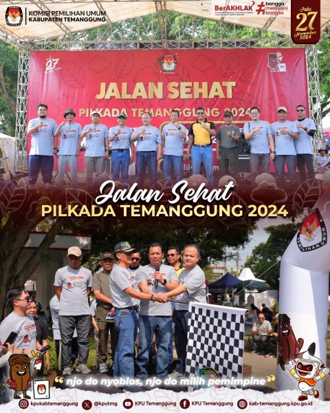 alam rangka memantapkan upaya sosialisasi tahapan Pilkada Serentak Tahun 2024, Komisi Pemilihan Umum Kabupaten Temanggung menggelar Jalan Sehat Pilkada Temanggung 2024 yang dilaksanakan pada Minggu, (09/11/2024) di Alun-alun Kabupaten Temanggung